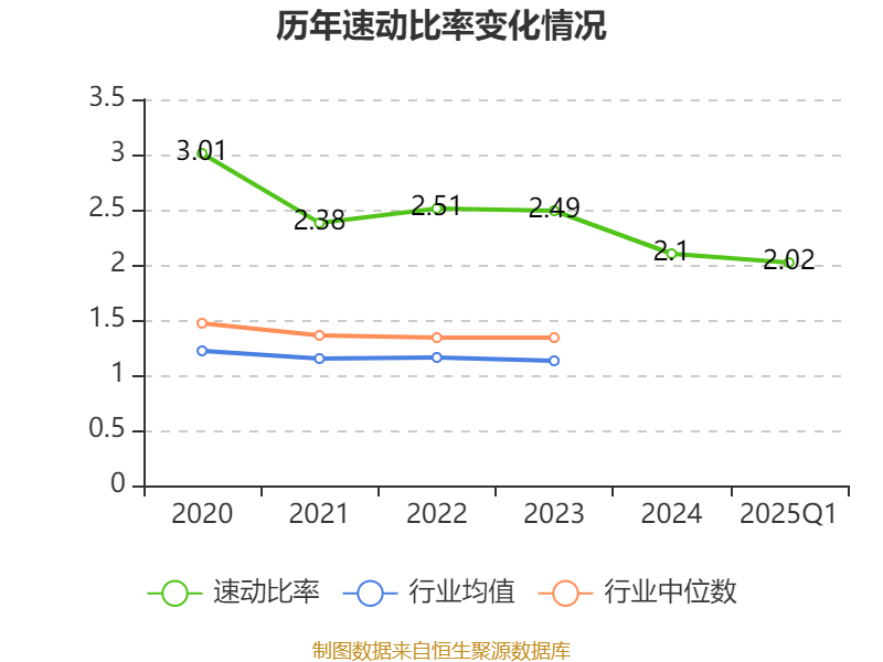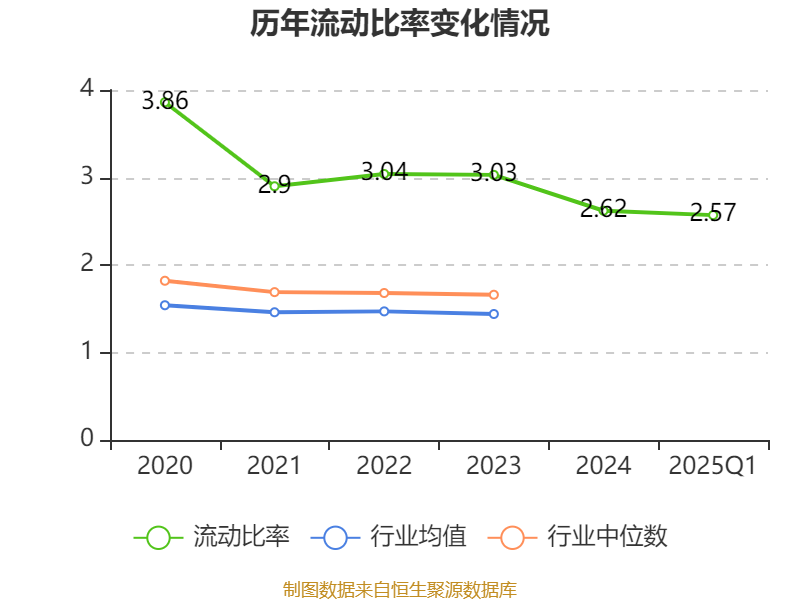 2025年第一季度,公司流动比率为2.57,速动比率为2.02。
