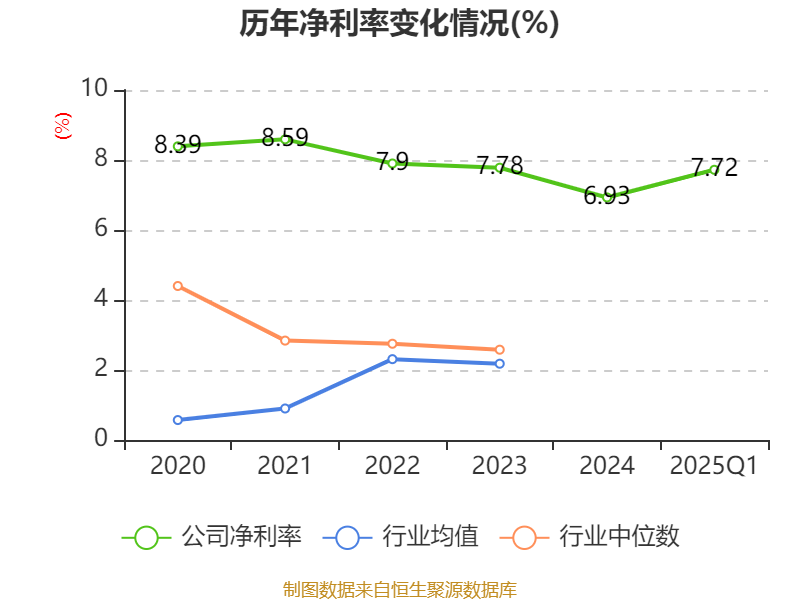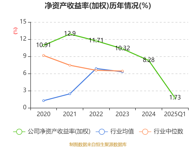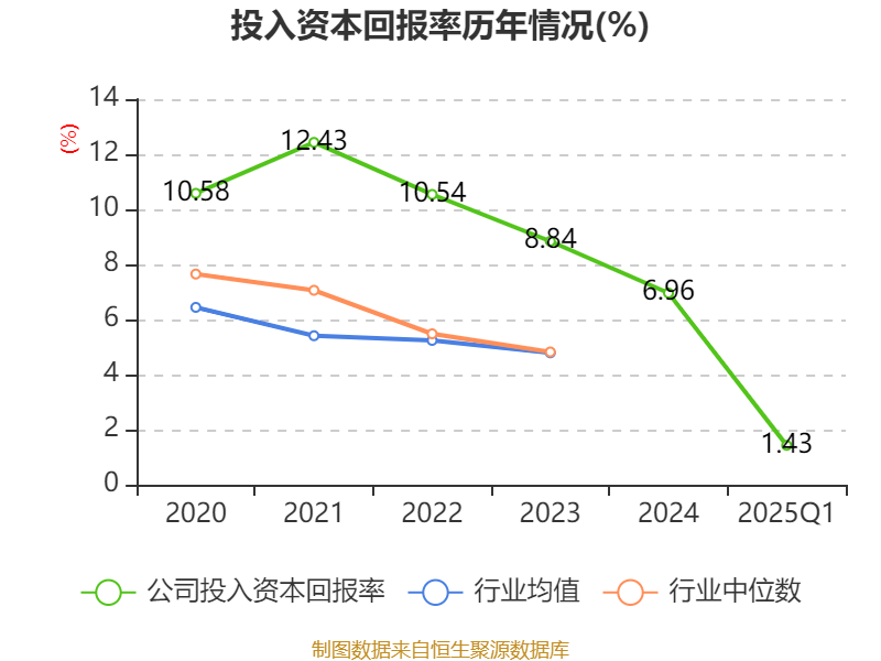 盈利能力方面, 2025年一季度公司加权平均净资产收益率为1.73%,同比下降0.85个百分点。公司2025年第一季度投入资本回报率为1.43%,较上年同期下降0.78个百分点。