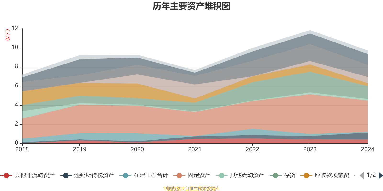 资产重大变化方面,截至2024年末,公司存货较上年末减少38.63%,占公司总资产比重下降4.63个百分点;递延所得税资产较上年末增加105.6%,占公司总资产比重上升4.5个百分点;交易性金融资产合计较上年末增加85.64%,占公司总资产比重上升3.74个百分点;应收款项融资较上年末减少59.13%,占公司总资产比重下降3.22个百分点。