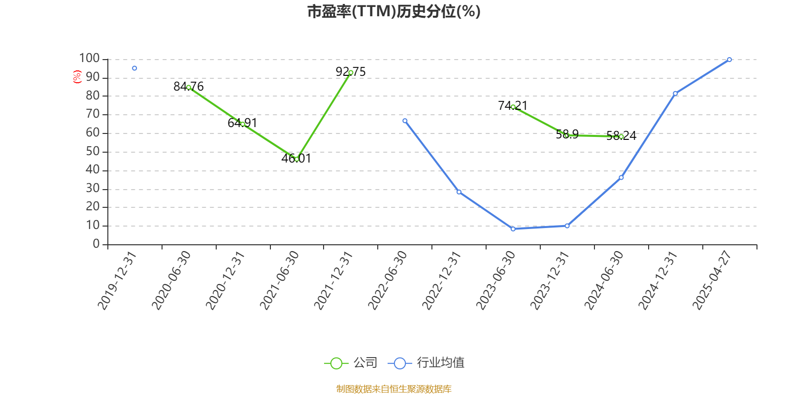 市盈率、市净率为负时,不显示当期分位数,会导致折线图中断。