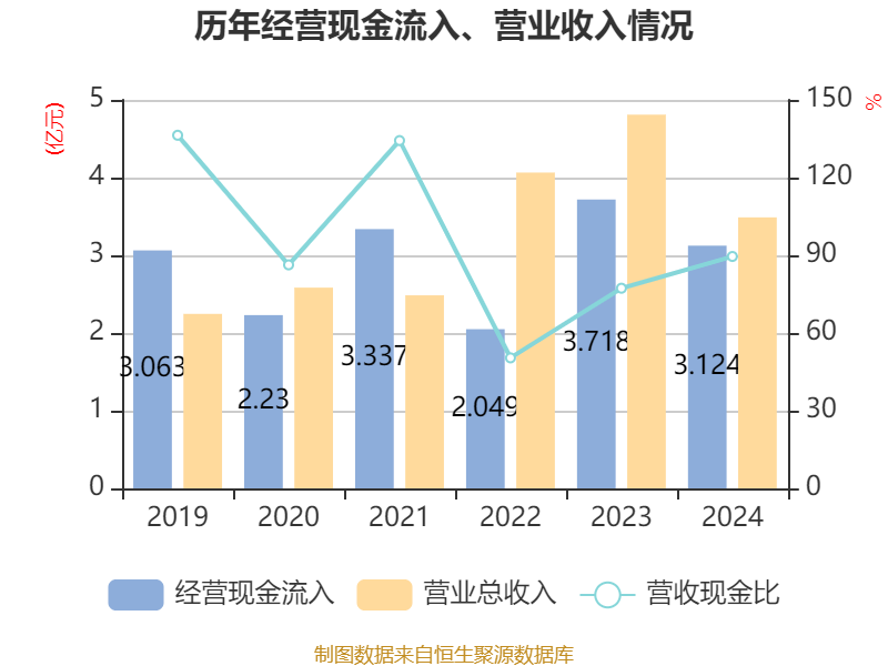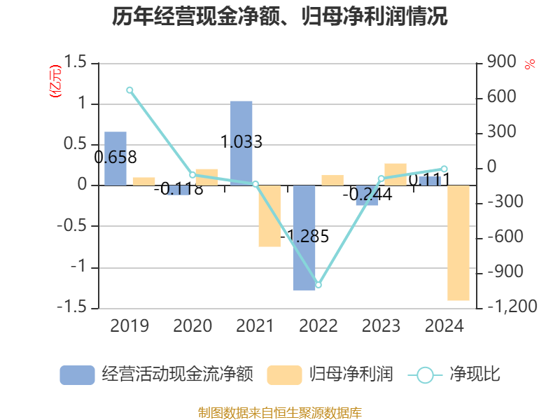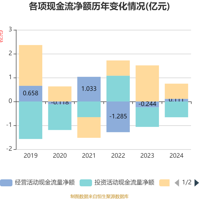 截至2024年,公司经营活动现金流净额为1106.48万元,同比增加3544.19万元;筹资活动现金流净额6355.12万元,同比减少8765.36万元;投资活动现金流净额-6597.76万元,上年同期为-8195.91万元。
