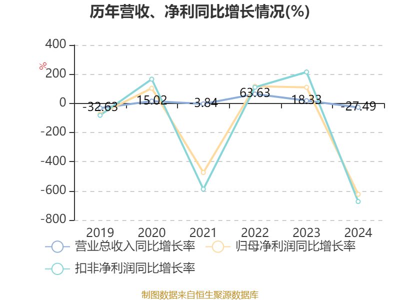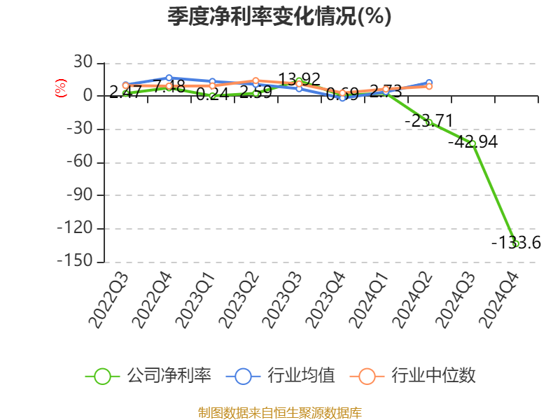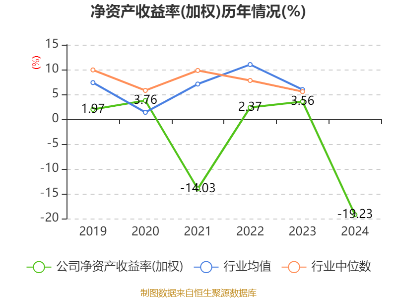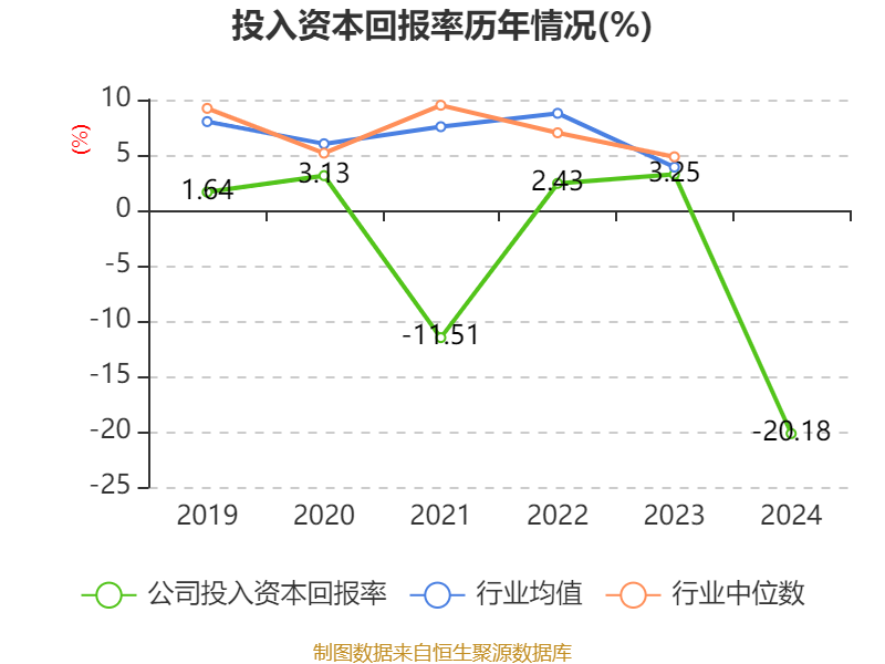 数据显示,2024年公司加权平均净资产收益率为-19.23%,较上年同期下降22.79个百分点。公司2024年投入资本回报率为-20.18%,较上年同期下降23.43个百分点。