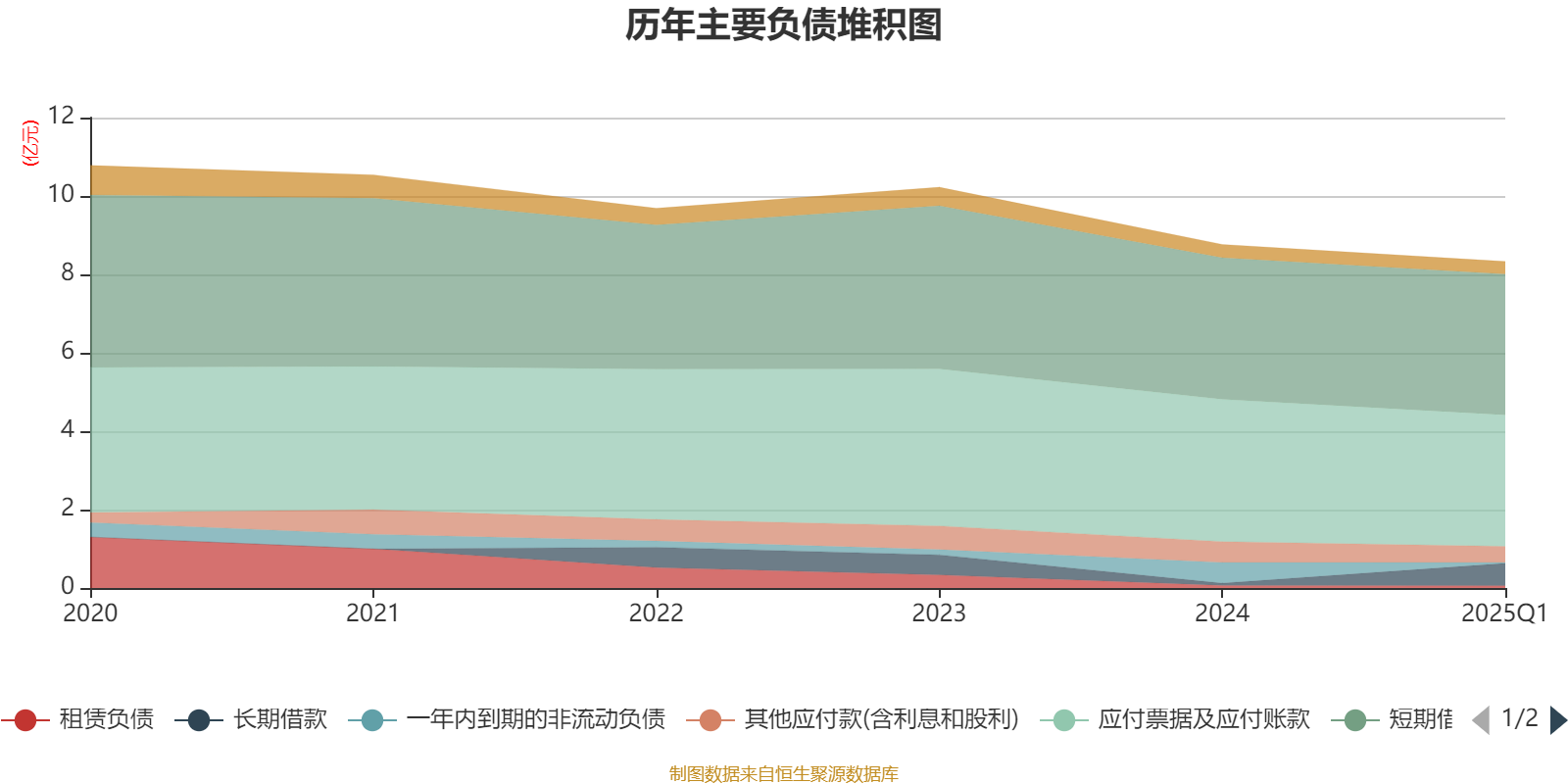 负债重大变化方面,截至2025年一季度末,公司长期借款较上年末增加852.34%,占公司总资产比重上升5.18个百分点;一年内到期的非流动负债较上年末减少95.98%,占公司总资产比重下降4.86个百分点;短期借款较上年末减少0.46%,占公司总资产比重上升1.71个百分点;其他应付款(含利息和股利)较上年末减少22.49%,占公司总资产比重下降0.92个百分点。