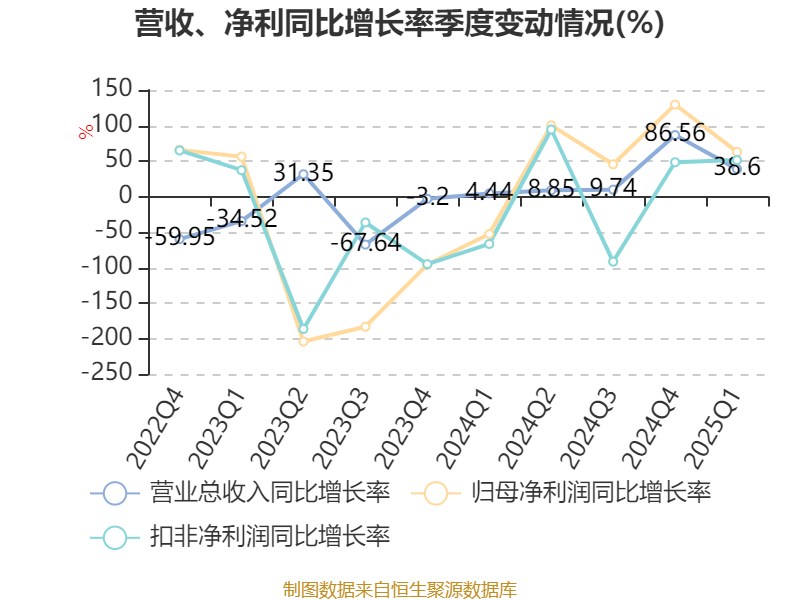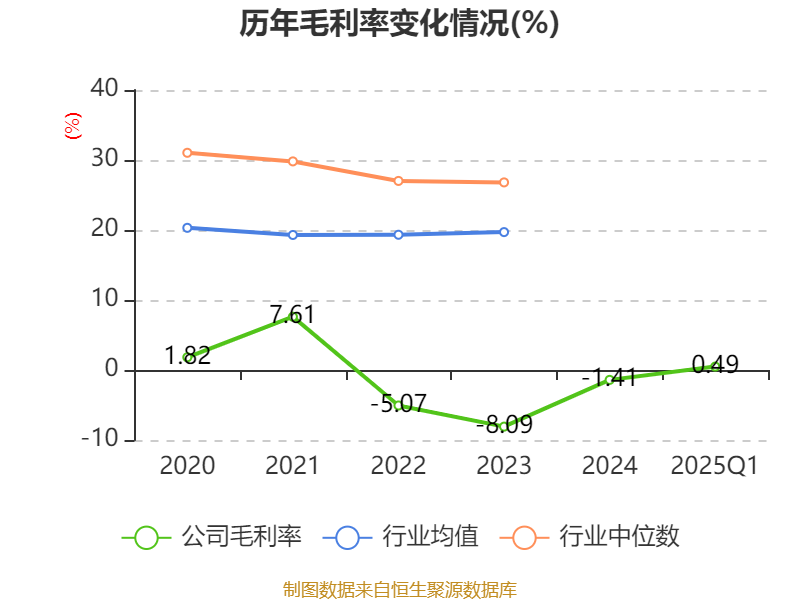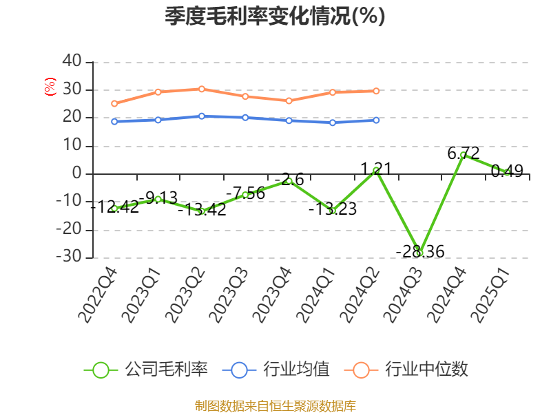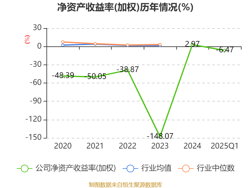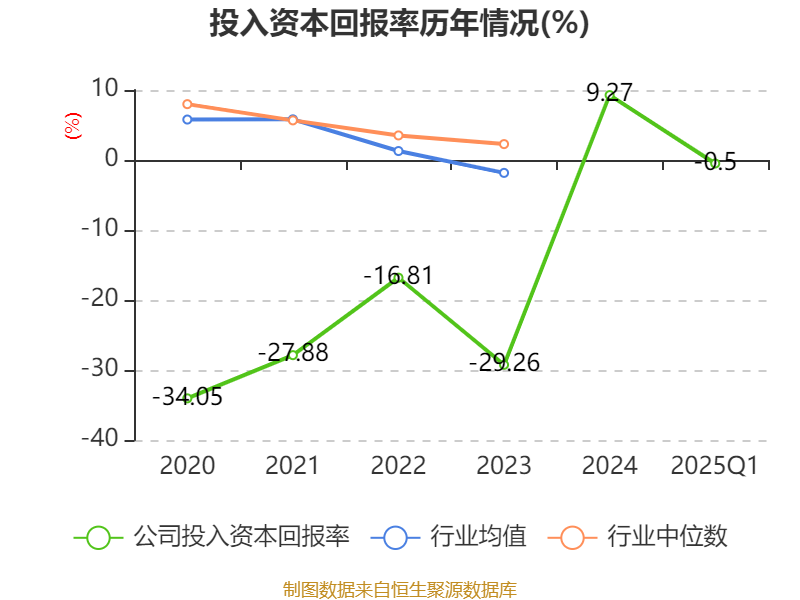 盈利能力方面, 2025年一季度公司加权平均净资产收益率为-6.47%,同比上升9.75个百分点。公司2025年第一季度投入资本回报率为-0.5%,较上年同期上升1.32个百分点。
