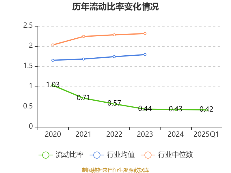 2025年第一季度,公司流动比率为0.42,速动比率为0.38。