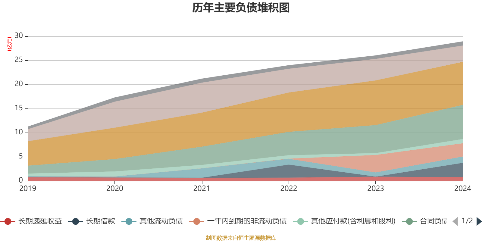 负债重大变化方面,截至2024年末,公司长期借款占公司总资产的6.42%,上年末为0;短期借款较上年末减少24%,占公司总资产比重下降2.78个百分点;一年内到期的非流动负债较上年末减少24.23%,占公司总资产比重下降2.27个百分点;合同负债较上年末增加21.72%,占公司总资产比重上升2.16个百分点。