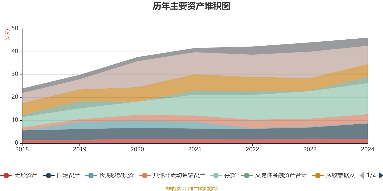 资产重大变化方面,截至2024年末,公司货币资金较上年末减少30.14%,占公司总资产比重下降8.68个百分点;交易性金融资产合计较上年末增加992.8%,占公司总资产比重上升5.04个百分点;固定资产较上年末增加40.34%,占公司总资产比重上升3.72个百分点;存货较上年末增加12.79%,占公司总资产比重上升2.13个百分点。