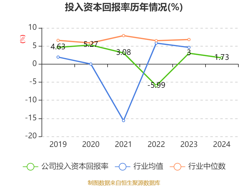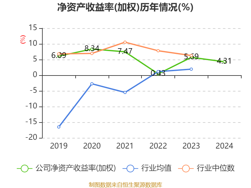 数据显示,2024年公司加权平均净资产收益率为4.31%,较上年同期下降1.38个百分点。公司2024年投入资本回报率为1.73%,较上年同期下降1.27个百分点。