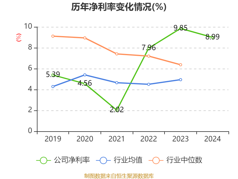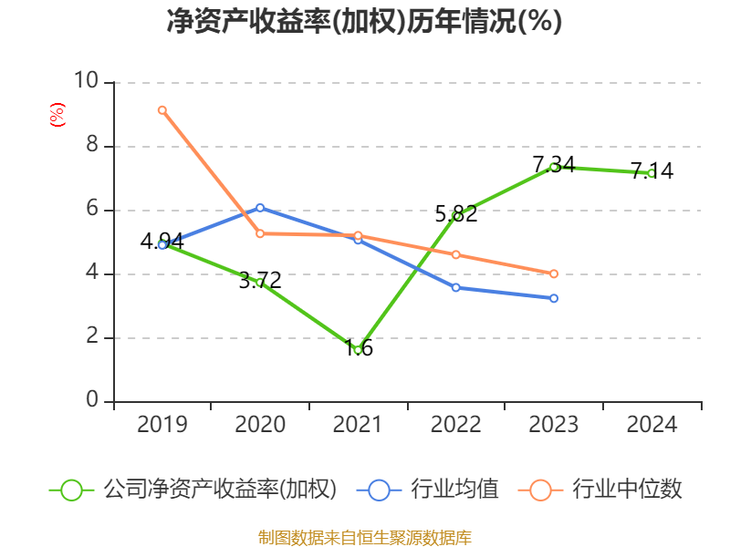 数据显示,2024年公司加权平均净资产收益率为7.14%,较上年同期下降0.2个百分点。公司2024年投入资本回报率为5.63%,较上年同期上升1.38个百分点。