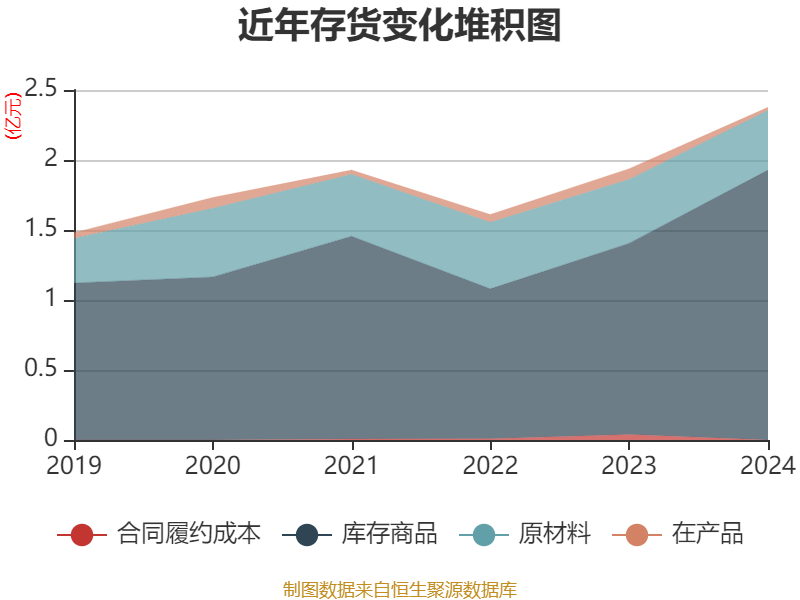 从存货变动来看,截至2024年末,公司存货账面价值为2.38亿元,占净资产的13.96%,较上年末增加4372.87万元。其中,存货跌价准备为2149.91万元,计提比例为8.3%。