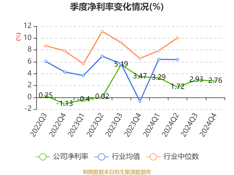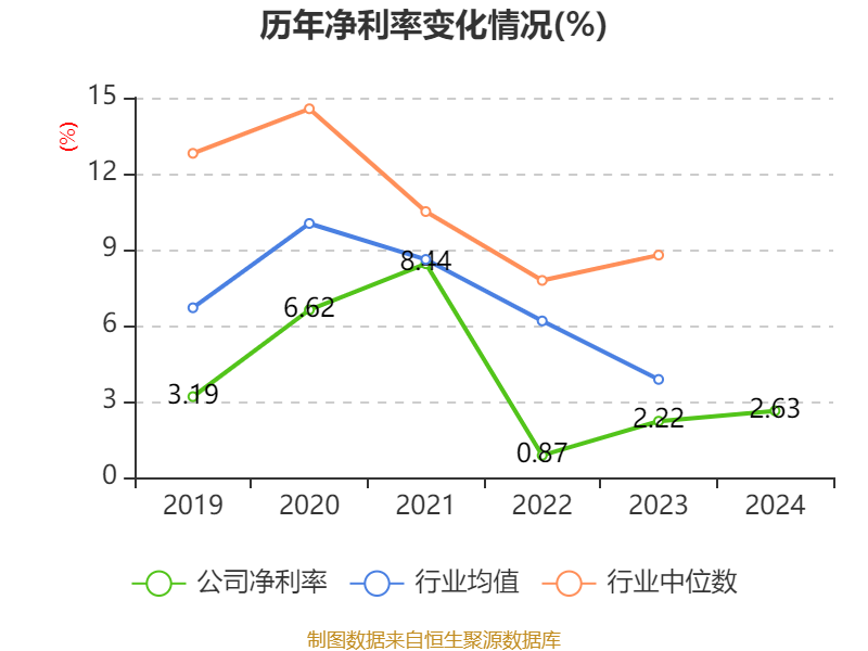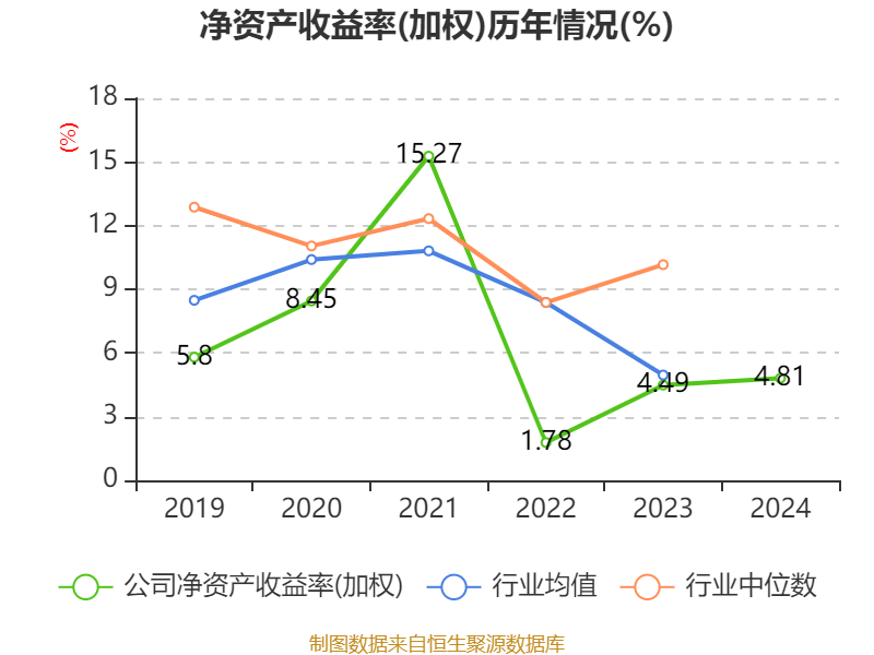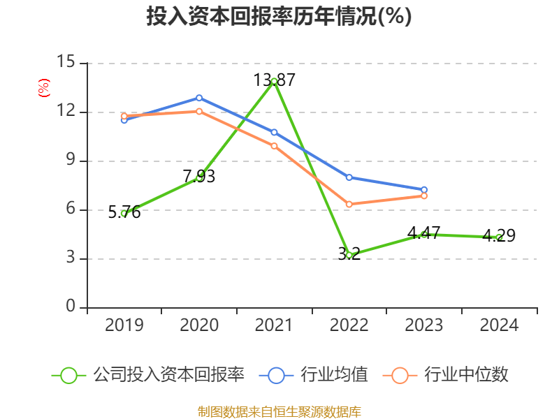 数据显示,2024年公司加权平均净资产收益率为4.81%,较上年同期上升0.32个百分点。公司2024年投入资本回报率为4.29%,较上年同期下降0.18个百分点。