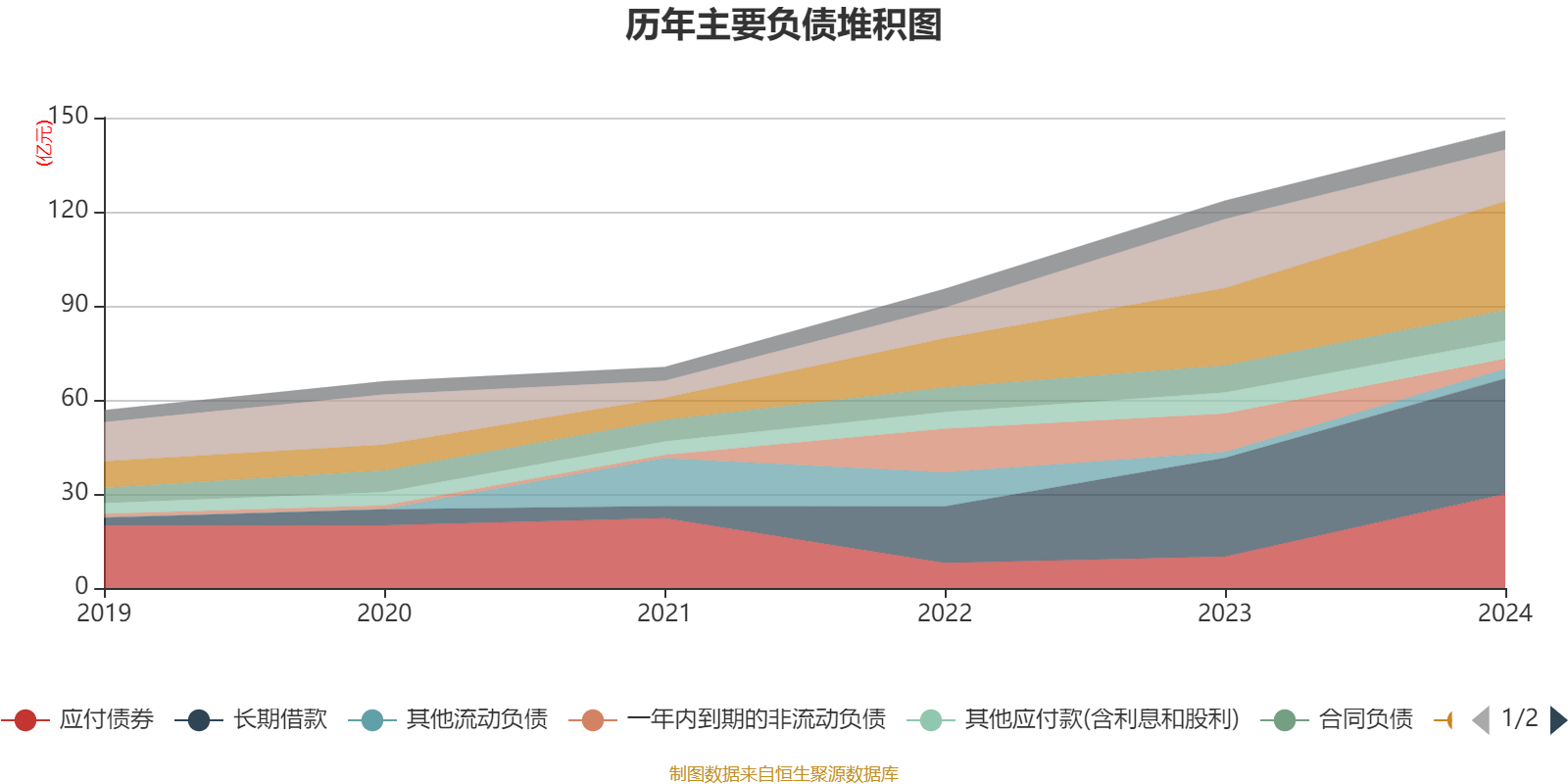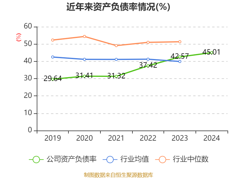 负债重大变化方面,截至2024年末,公司应付债券较上年末增加200.03%,占公司总资产比重上升5.81个百分点;一年内到期的非流动负债较上年末减少73.98%,占公司总资产比重下降3.23个百分点;短期借款较上年末减少24.89%,占公司总资产比重下降2.48个百分点;应付票据及应付账款较上年末增加40.45%,占公司总资产比重上升2.19个百分点。