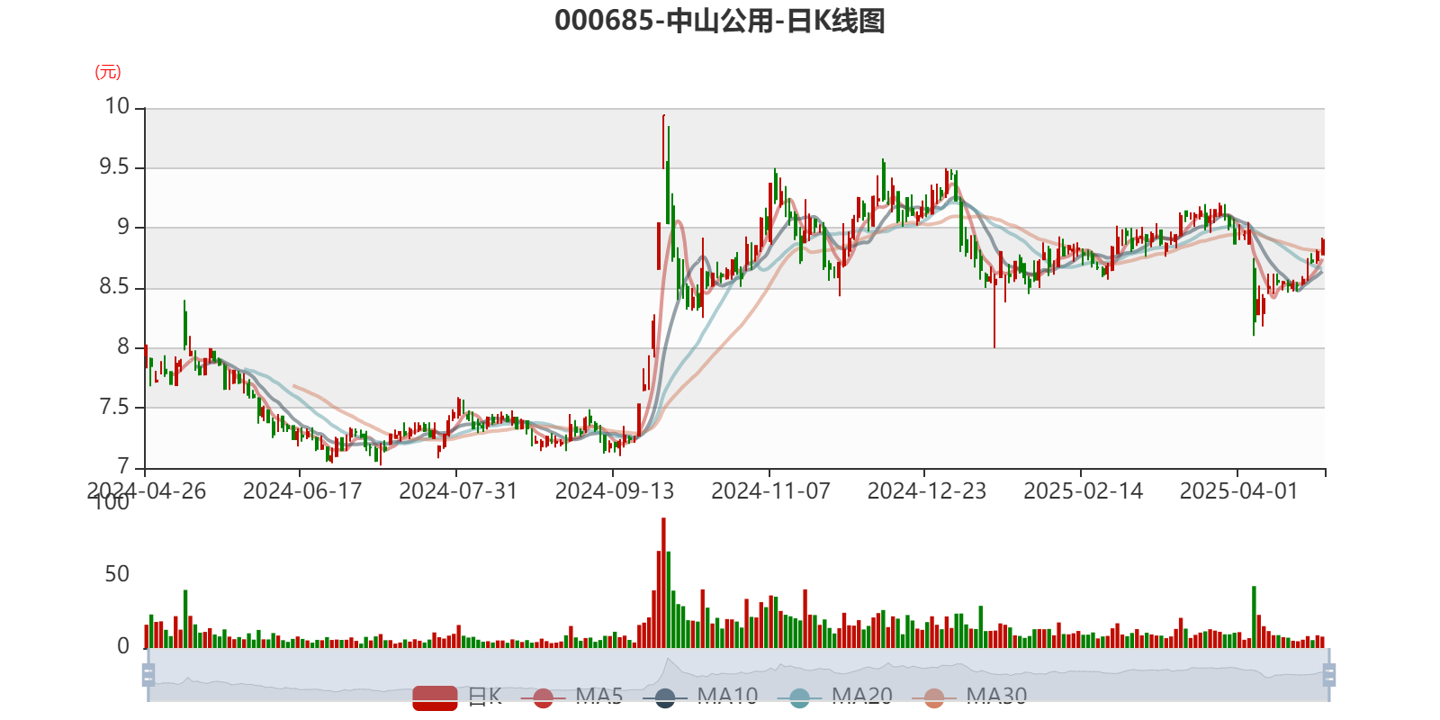 以4月25日收盘价计算,中山公用目前市盈率(TTM)约为10.95倍,市净率(LF)约0.75倍,市销率(TTM)约2.31倍。