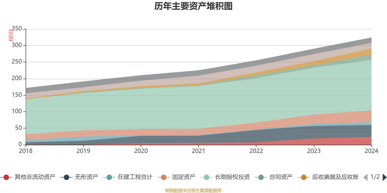 资产重大变化方面,截至2024年末,公司合同资产较上年末增加110.88%,占公司总资产比重上升2.45个百分点;货币资金较上年末减少21.3%,占公司总资产比重下降2.22个百分点;无形资产较上年末减少5.02%,占公司总资产比重下降1.96个百分点;长期股权投资较上年末增加8.15%,占公司总资产比重下降1.55个百分点。