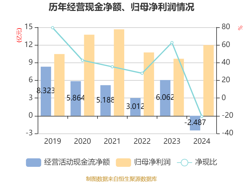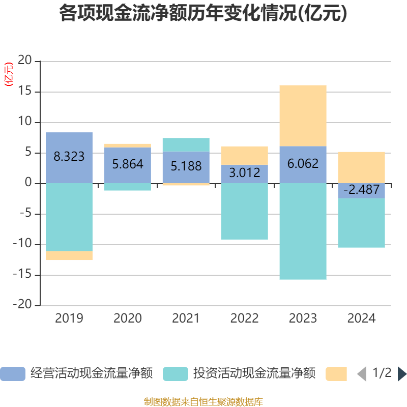 截至2024年,公司经营活动现金流净额为-2.49亿元,同比减少8.55亿元;筹资活动现金流净额5.1亿元,同比减少4.87亿元;投资活动现金流净额-8.07亿元,上年同期为-15.8亿元。