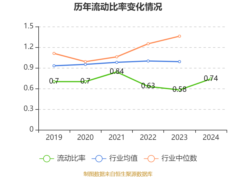 2024年,公司流动比率为0.74,速动比率为0.72。