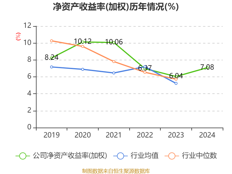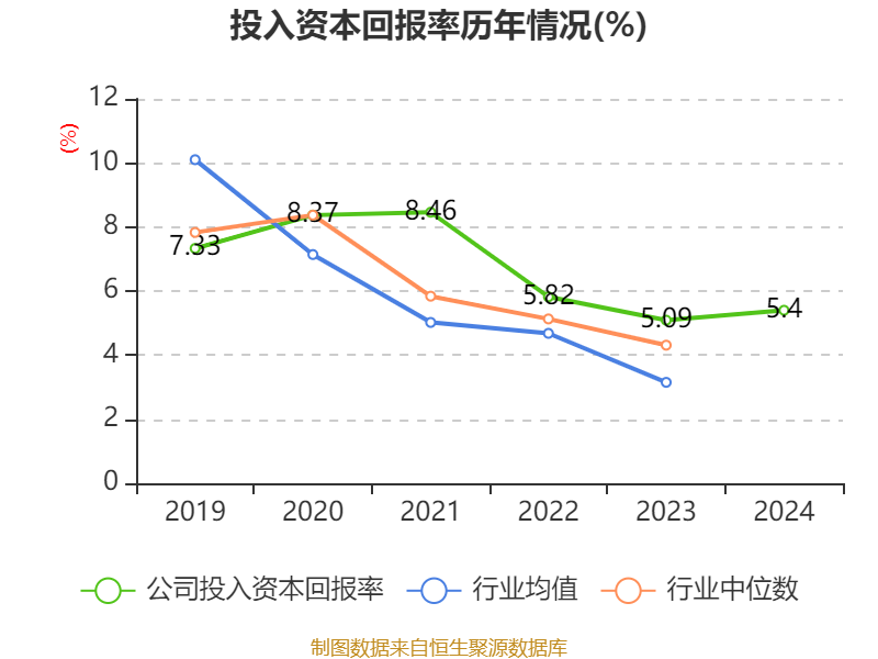 数据显示,2024年公司加权平均净资产收益率为7.08%,较上年同期上升1.04个百分点。公司2024年投入资本回报率为5.4%,较上年同期上升0.31个百分点。
