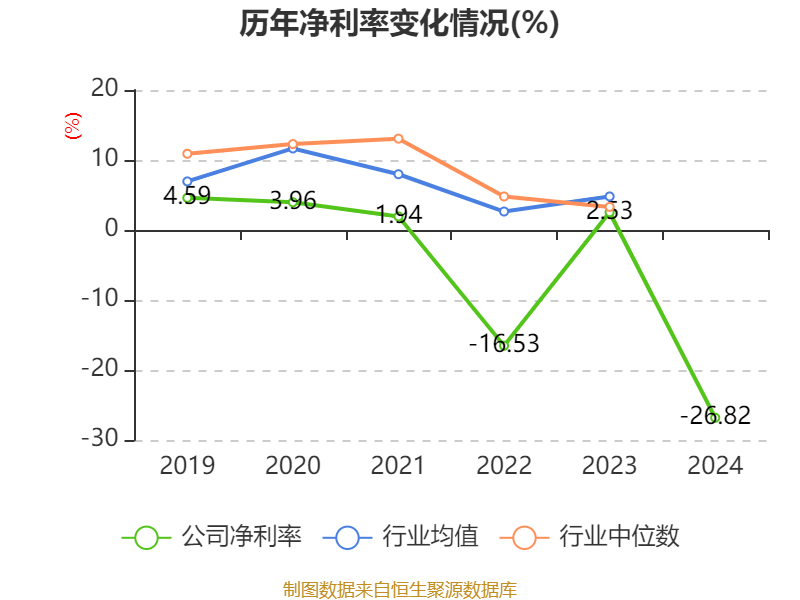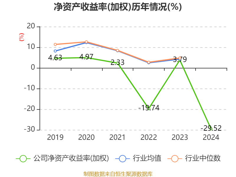 数据显示,2024年公司加权平均净资产收益率为-29.52%,较上年同期下降33.31个百分点。公司2024年投入资本回报率为-9.54%,较上年同期下降13.7个百分点。