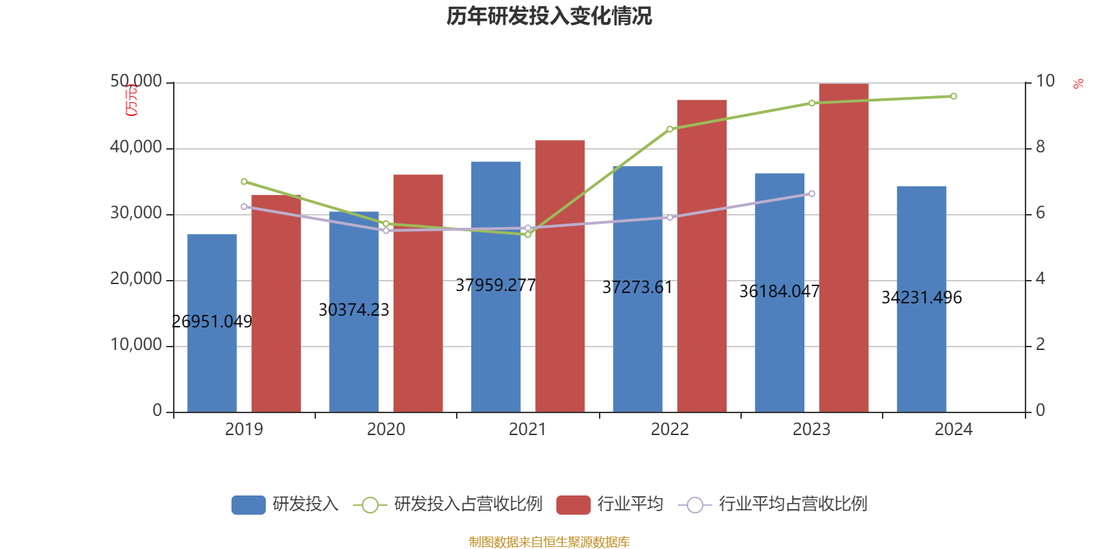 2024年全年,公司研发投入金额为3.42亿元,同比下降5.4%;研发投入占营业收入比例为9.58%,相比上年同期上升0.21个百分点。此外,公司全年研发投入资本化率为0%。