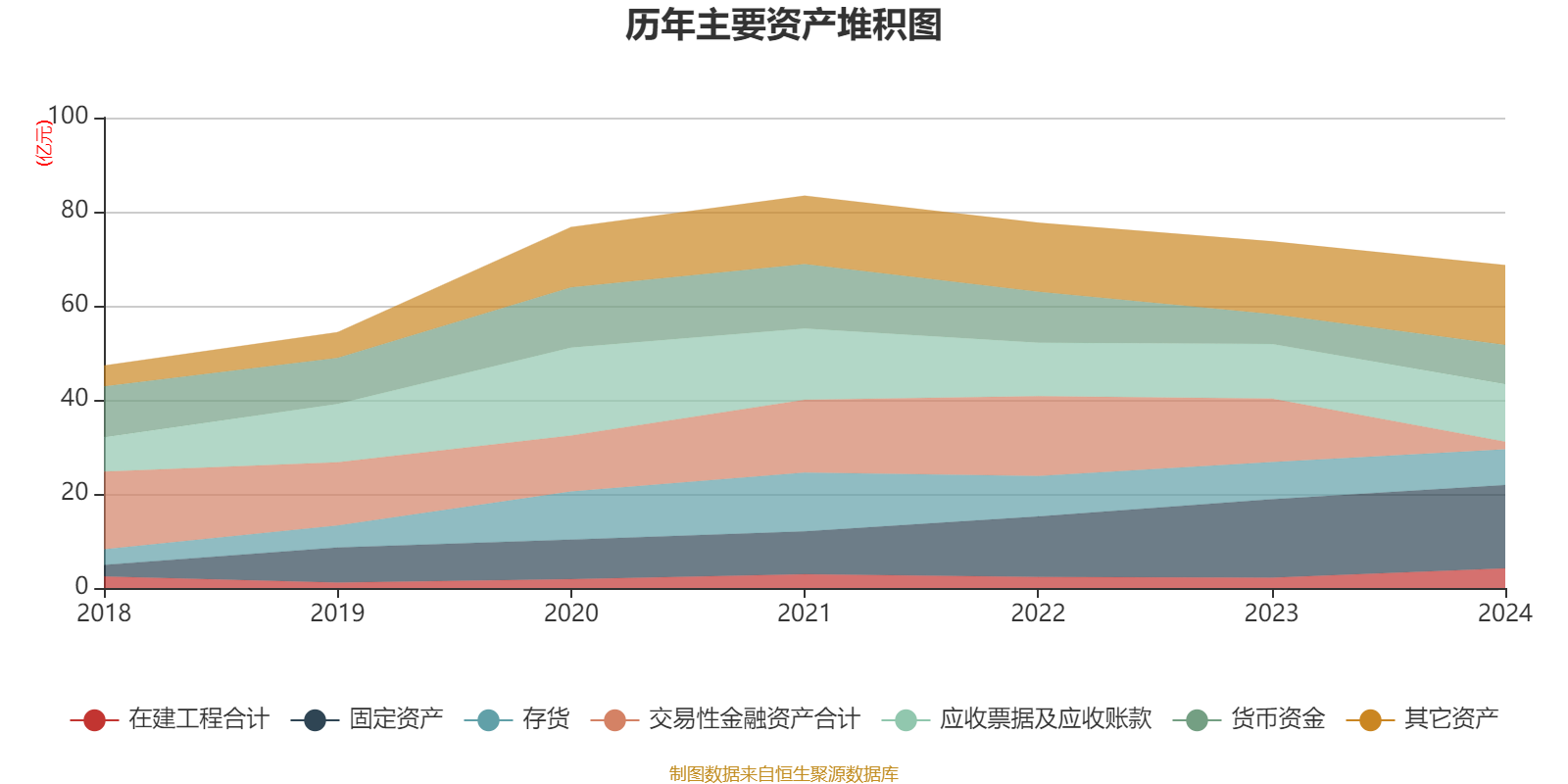 资产重大变化方面,截至2024年末,公司交易性金融资产合计较上年末减少88.04%,占公司总资产比重下降15.97个百分点;货币资金较上年末增加31.25%,占公司总资产比重上升3.53个百分点;固定资产较上年末增加6.28%,占公司总资产比重上升3.19个百分点;在建工程合计较上年末增加89.44%,占公司总资产比重上升3.08个百分点。