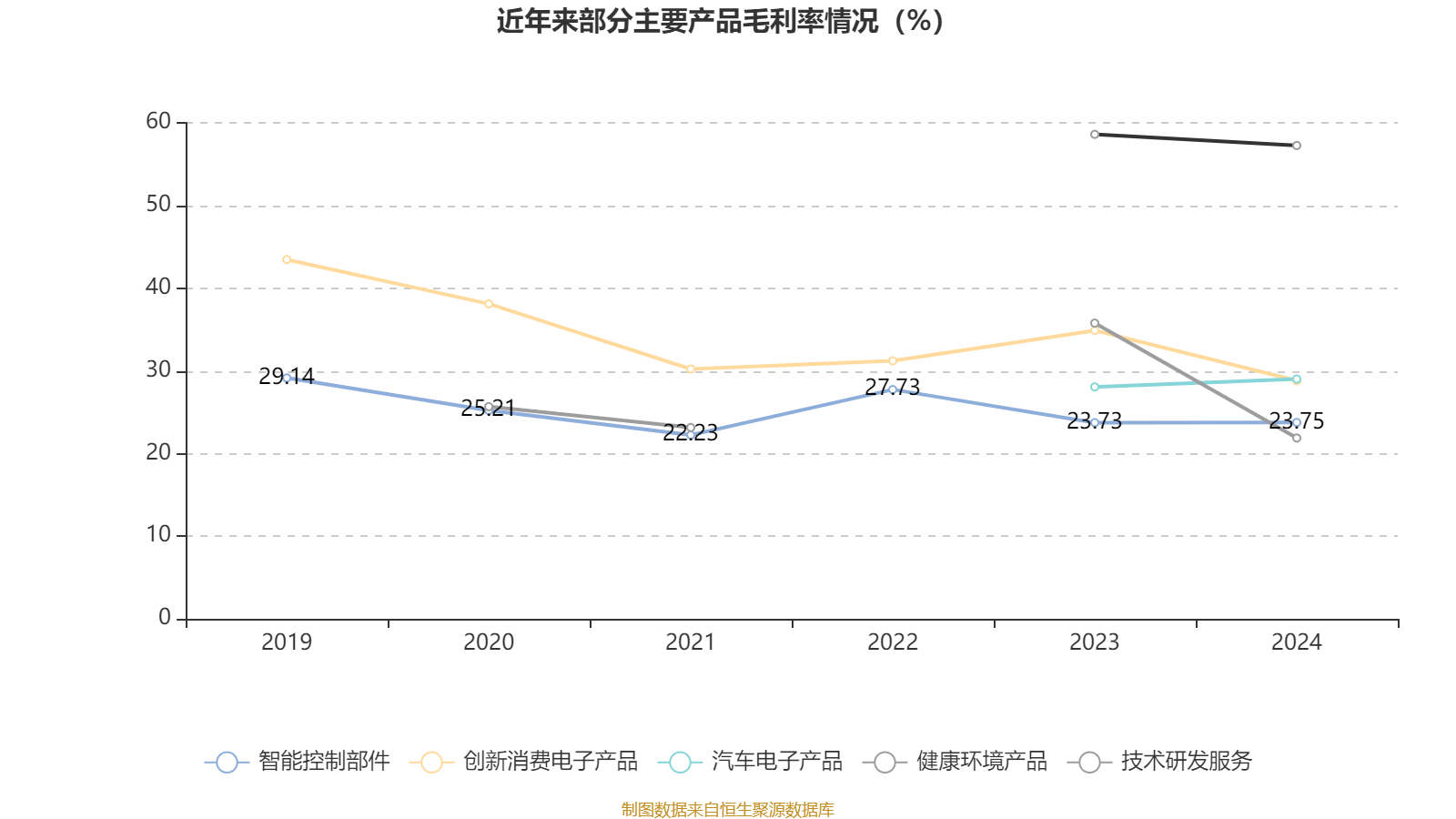中证智能财讯盈趣科技(002925)4月25日披露2024年年度报告。2024年,公司实现营业总收入35.73亿元,同比下降7.45%;归母净利润2.52亿元,同比下降44.17%;扣非净利润2.38亿元,同比下降38.43%;经营活动产生的现金流量净额为4.31亿元,同比下降37.44%;报告期内,盈趣科技基本每股收益为0.33元,加权平均净资产收益率为5.21%。公司2024年度分配预案为:拟向全体股东每10股派现3元(含税)。