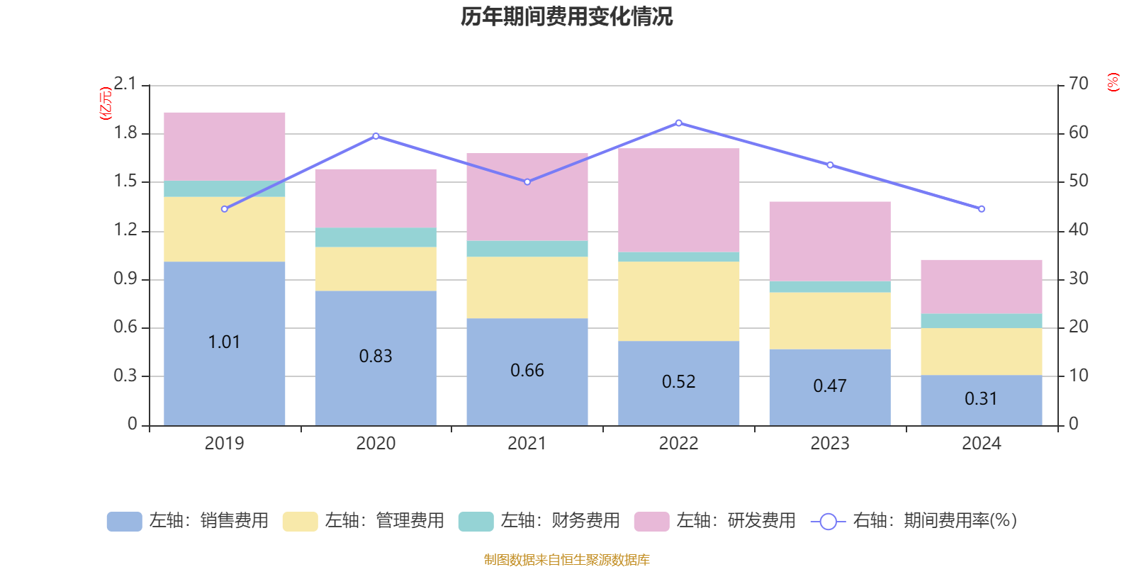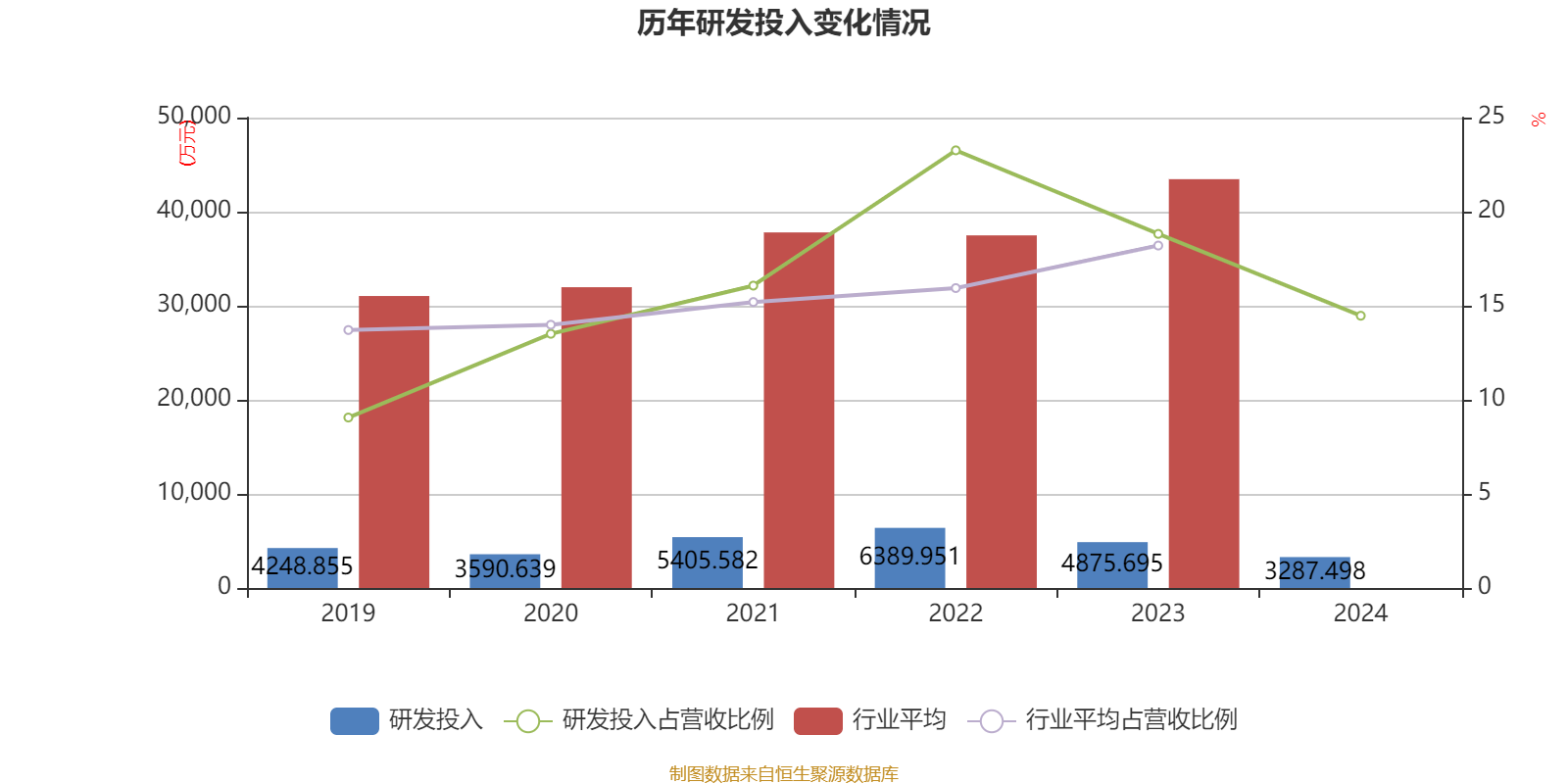 2024年全年,公司研发投入金额为3287.5万元,同比下降32.57%;研发投入占营业收入比例为14.47%,相比上年同期下降4.35个百分点。此外,公司全年研发投入资本化率为0%。
