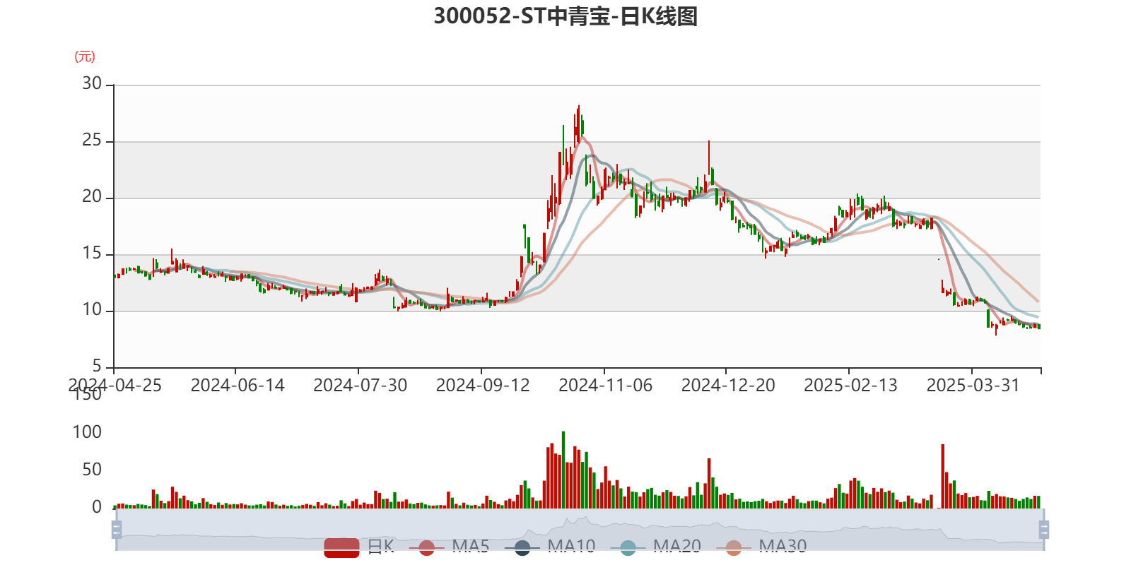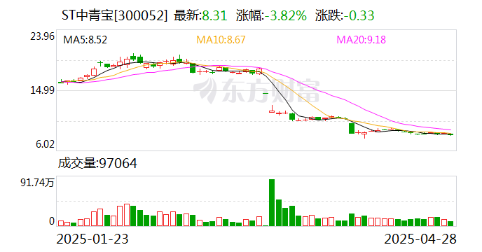 值得注意的是,中登公司数据显示,截至2025年4月18日,ST中青宝17.08%股份处于质押状态。年报显示,第一大股东深圳市宝德科技有限公司质押2490.34万股公司股份,占其全部持股的100%;第二大股东深圳市宝德投资控股有限公司质押1900万股公司股份,占其全部持股的99.26%;第七大股东李瑞杰质押83.39万股公司股份,占其全部持股的100%。