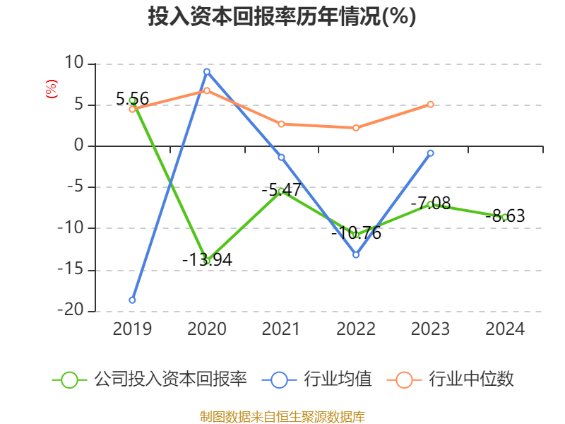 数据显示,2024年公司加权平均净资产收益率为-11.93%,较上年同期下降1.42个百分点。公司2024年投入资本回报率为-8.63%,较上年同期下降1.55个百分点。