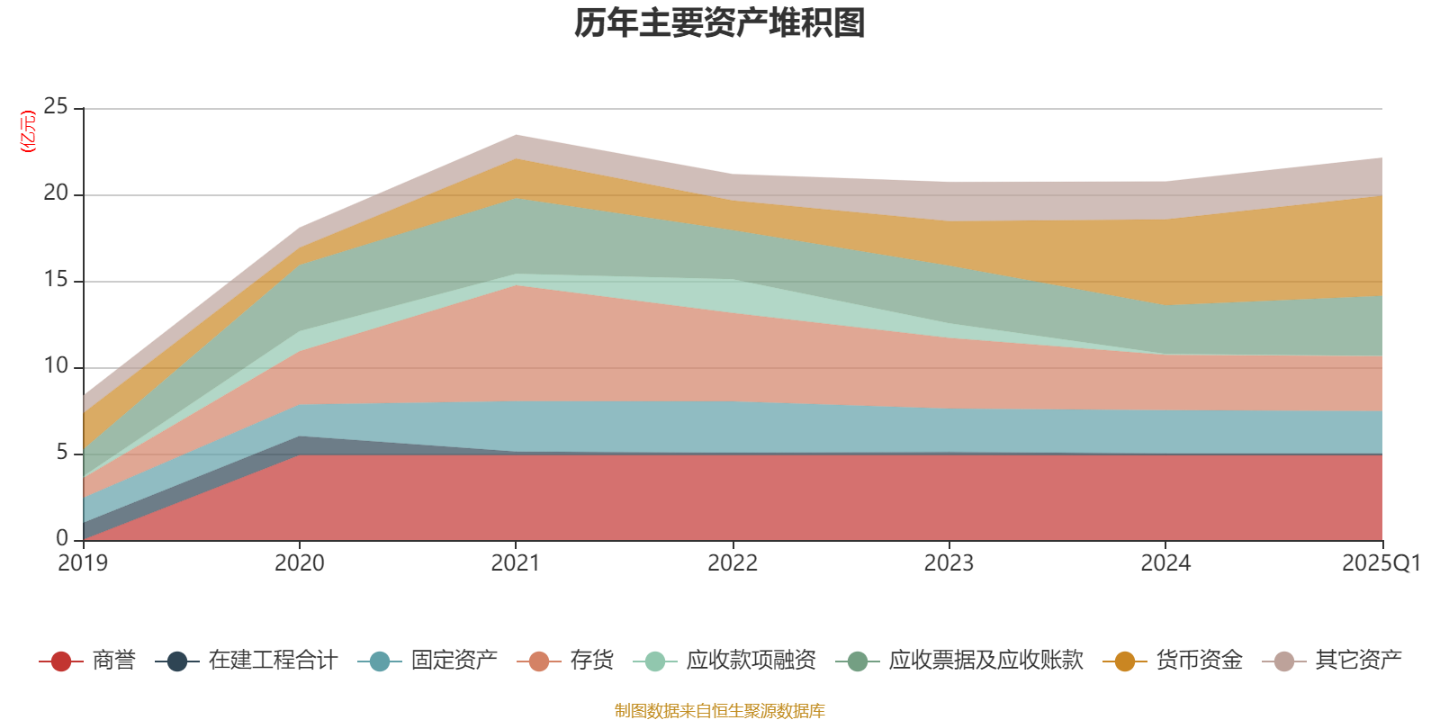 资产重大变化方面,截至2025年一季度末,公司应收票据及应收账款较上年末增加24.21%,占公司总资产比重上升2.23个百分点;货币资金较上年末增加16.38%,占公司总资产比重上升2.19个百分点;商誉较上年末没有变化,占公司总资产比重下降1.47个百分点;存货较上年末减少1.35%,占公司总资产比重下降1.16个百分点。