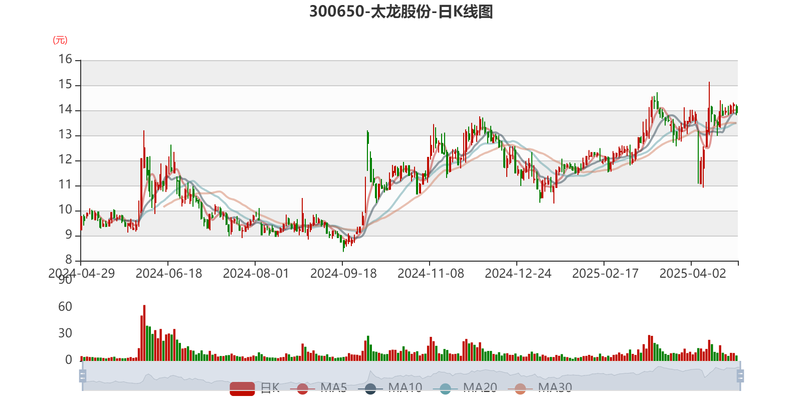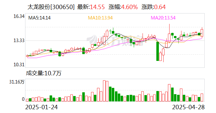 中证智能财讯太龙股份(300650)4月28日披露2025年第一季度报告。公司实现营业总收入5.71亿元,同比下降22.22%;归母净利润642.76万元,同比下降13.04%;扣非净利润579.09万元,同比下降13.86%;经营活动产生的现金流量净额为-1376.62万元,上年同期为-3778.13万元;报告期内,太龙股份基本每股收益为0.03元,加权平均净资产收益率为0.51%。