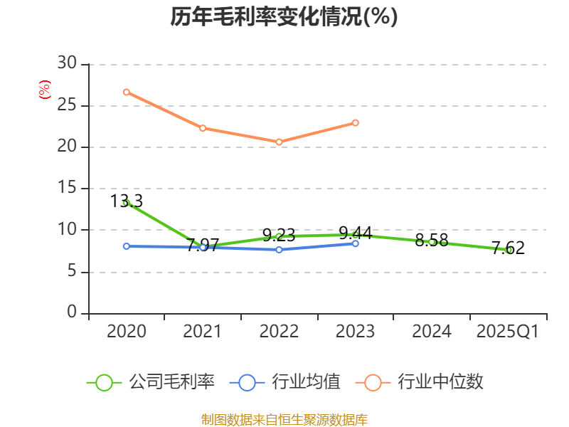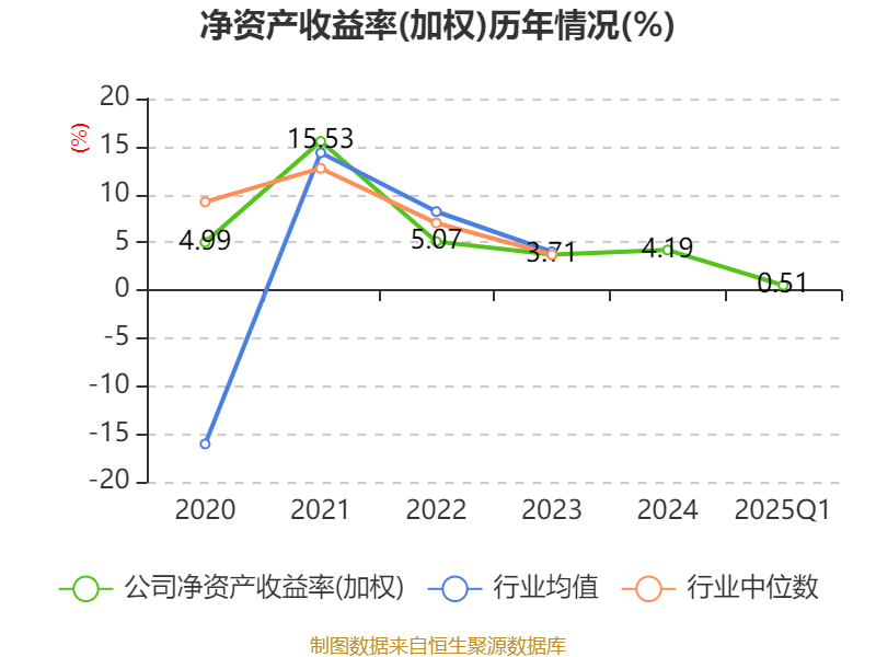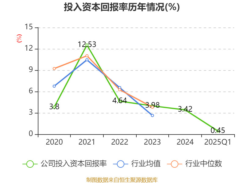 盈利能力方面, 2025年一季度公司加权平均净资产收益率为0.51%,同比下降0.11个百分点。公司2025年第一季度投入资本回报率为0.45%,较上年同期上升0.02个百分点。