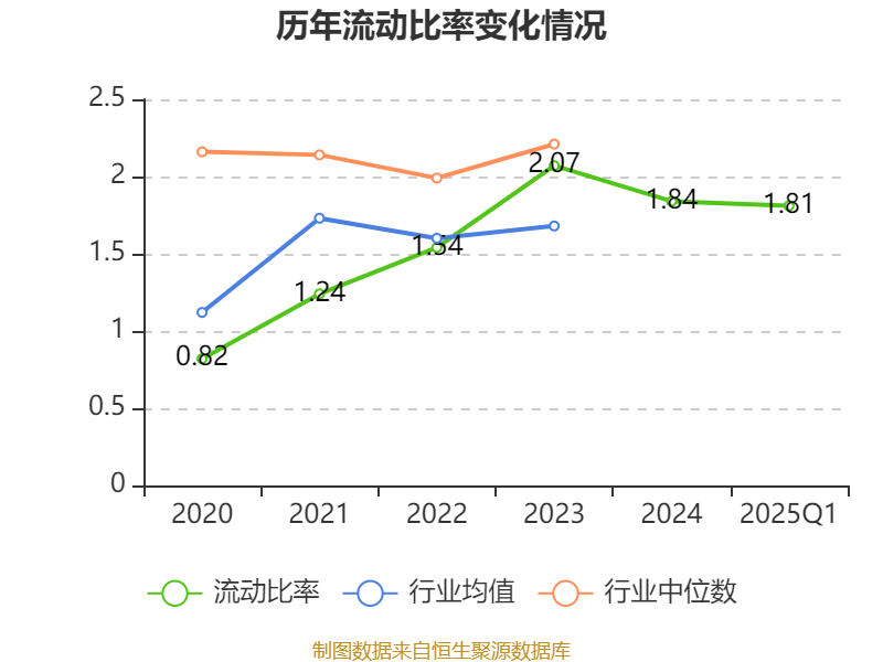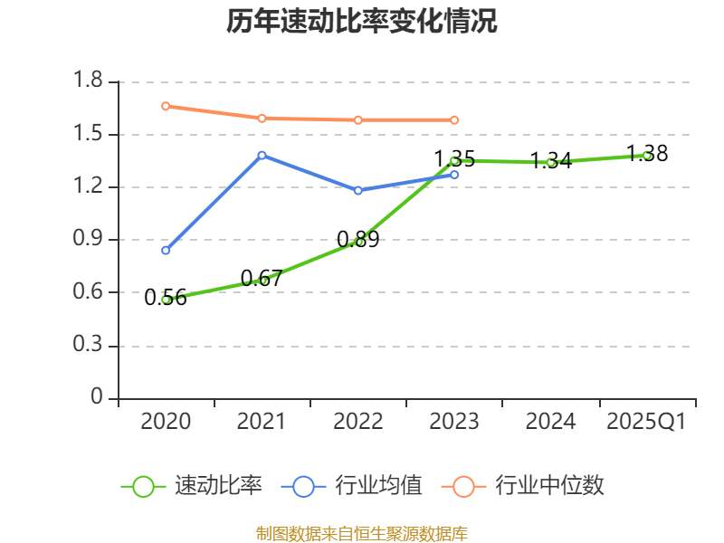 2025年第一季度,公司流动比率为1.81,速动比率为1.38。