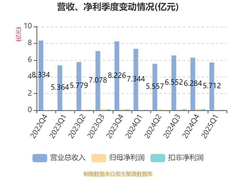 一季报显示,2025年一季度末的公司十大流通股东中,新进股东为陈子阳、中信证券资产管理(香港)有限公司-客户资金、杨忠义、肖翠华、刘佳铭,取代了上年末的张群、符雅玲、张之路、蔡明雅、冯毅。在具体持股比例上,向潜、杨小霞持股有所下降。