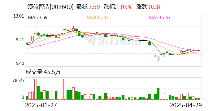 4月28日,领益智造(002600)公布2025年一季报,公司营业收入为114.9亿元,同比上升17.3%;归母净利润为5.65亿元,同比上升22.6%;扣非归母净利润为3.58亿元,同比上升1.6%;经营现金流净额为8.14亿元,同比下降24.2%;EPS(全面摊薄)为0.0806元。