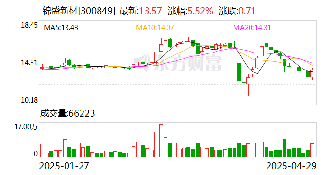 4月29日,锦盛新材(300849)公布2025年一季报,公司营业收入为7443万元,同比上升11.0%;归母净利润自去年同期亏损98万元变为亏损384万元,亏损额进一步扩大;扣非归母净利润自去年同期亏损319万元变为亏损472万元,亏损额进一步扩大;经营现金流净额为-2667万元,同比下降944.2%;EPS(全面摊薄)为-0.0256元。