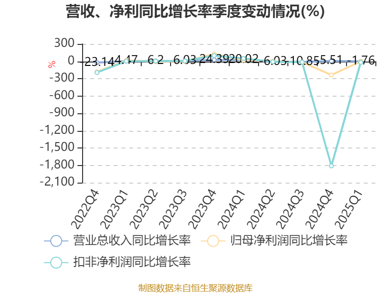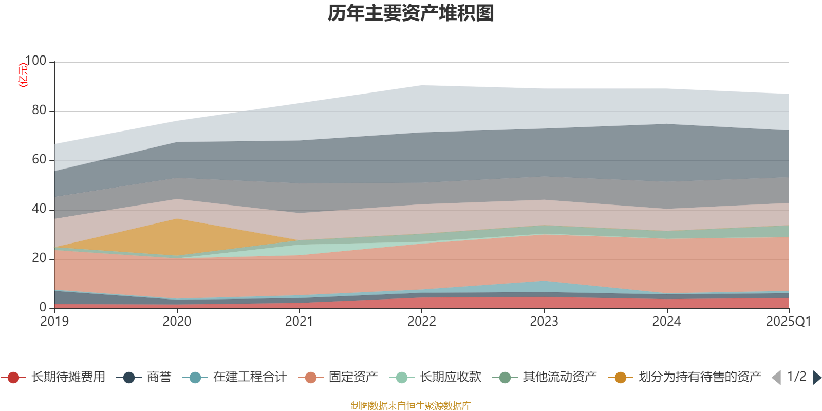 资产重大变化方面,截至2025年一季度末,公司货币资金较上年末减少19%,占公司总资产比重下降4.47个百分点;其他流动资产较上年末增加54.67%,占公司总资产比重上升2.01个百分点;预付款项较上年末增加68.21%,占公司总资产比重上升0.8个百分点;长期待摊费用较上年末增加13.29%,占公司总资产比重上升0.66个百分点。