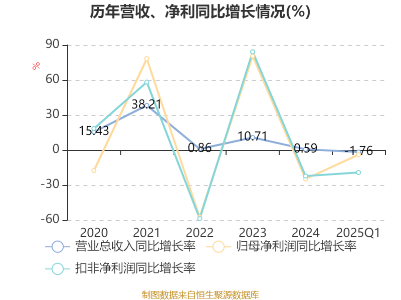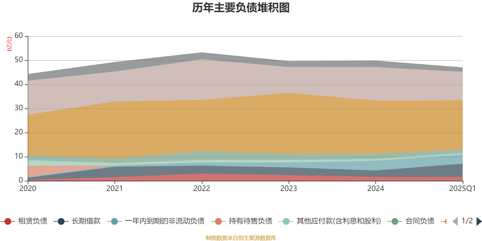 负债重大变化方面,截至2025年一季度末,公司长期借款较上年末增加110.36%,占公司总资产比重上升3.39个百分点;短期借款较上年末减少14.94%,占公司总资产比重下降2个百分点;应付票据及应付账款较上年末减少7.71%,占公司总资产比重下降1.34个百分点;合同负债较上年末减少29.06%,占公司总资产比重下降0.66个百分点。