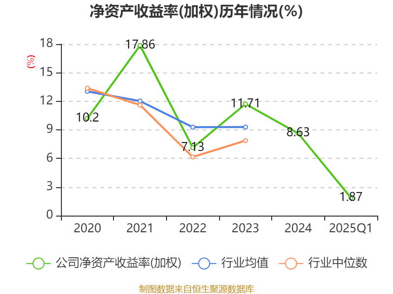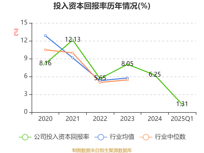 盈利能力方面, 2025年一季度公司加权平均净资产收益率为1.87%,同比下降0.11个百分点。公司2025年第一季度投入资本回报率为1.31%,较上年同期下降0.1个百分点。