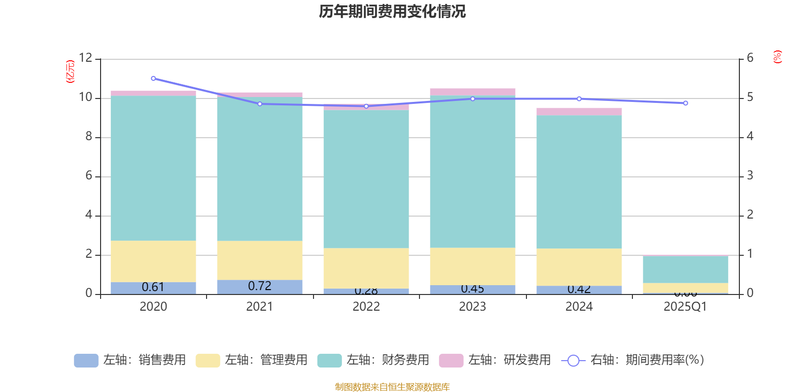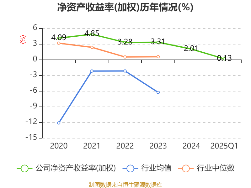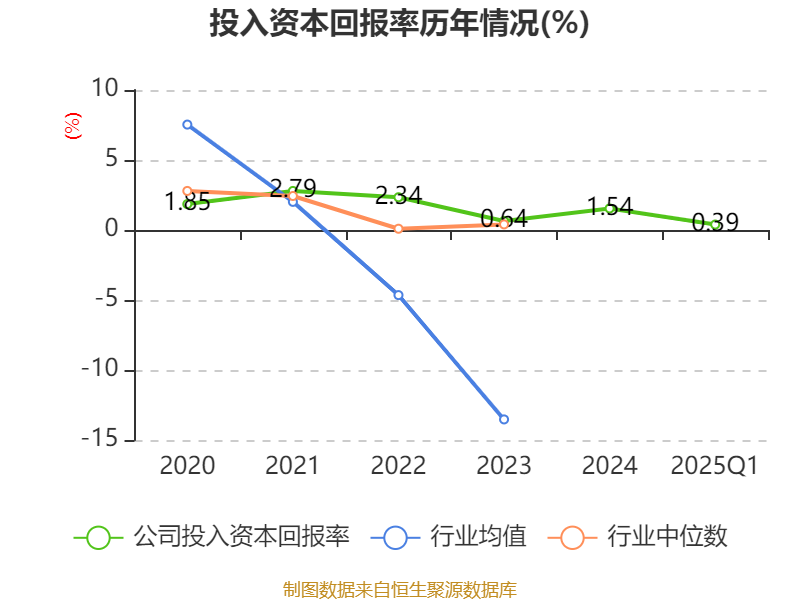 盈利能力方面, 2025年一季度公司加权平均净资产收益率为0.13%,同比持平。公司2025年第一季度投入资本回报率为0.39%,较上年同期下降0.03个百分点。