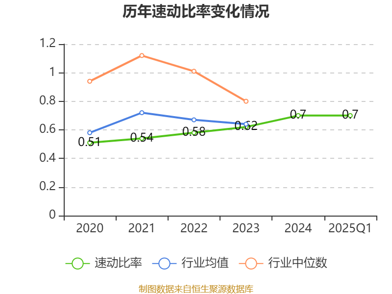 2025年第一季度,公司流动比率为1.19,速动比率为0.7。