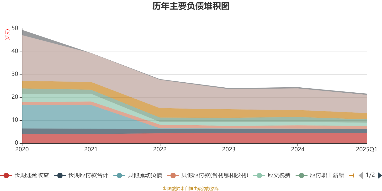 负债重大变化方面,截至2025年一季度末,公司应付票据及应付账款较上年末减少15.76%,占公司总资产比重下降0.62个百分点;应付职工薪酬较上年末减少34.2%,占公司总资产比重下降0.3个百分点;合同负债较上年末减少10.14%,占公司总资产比重下降0.13个百分点;其他应付款(含利息和股利)较上年末减少11.23%,占公司总资产比重下降0.07个百分点。