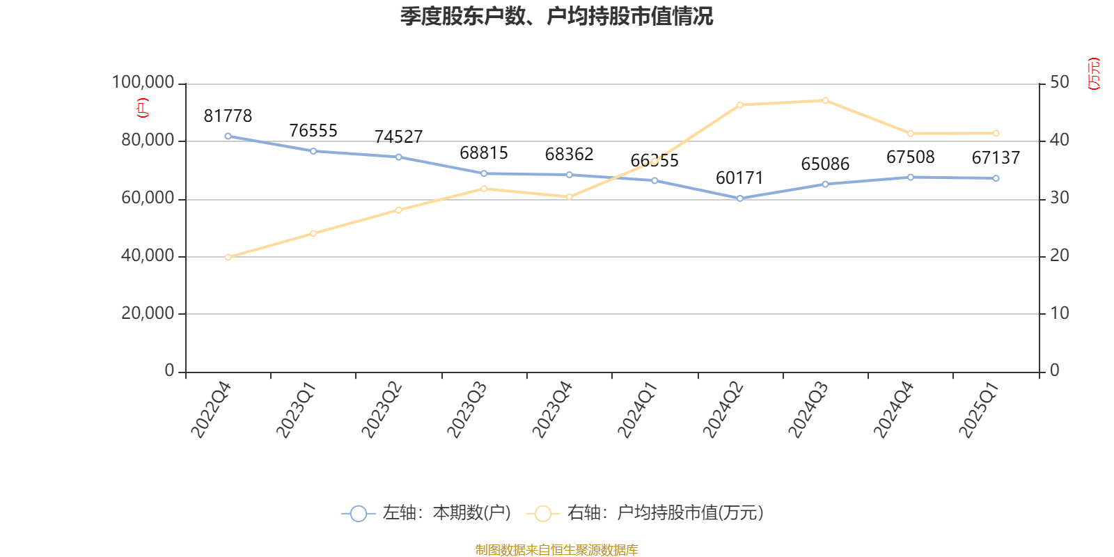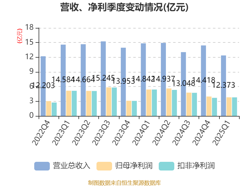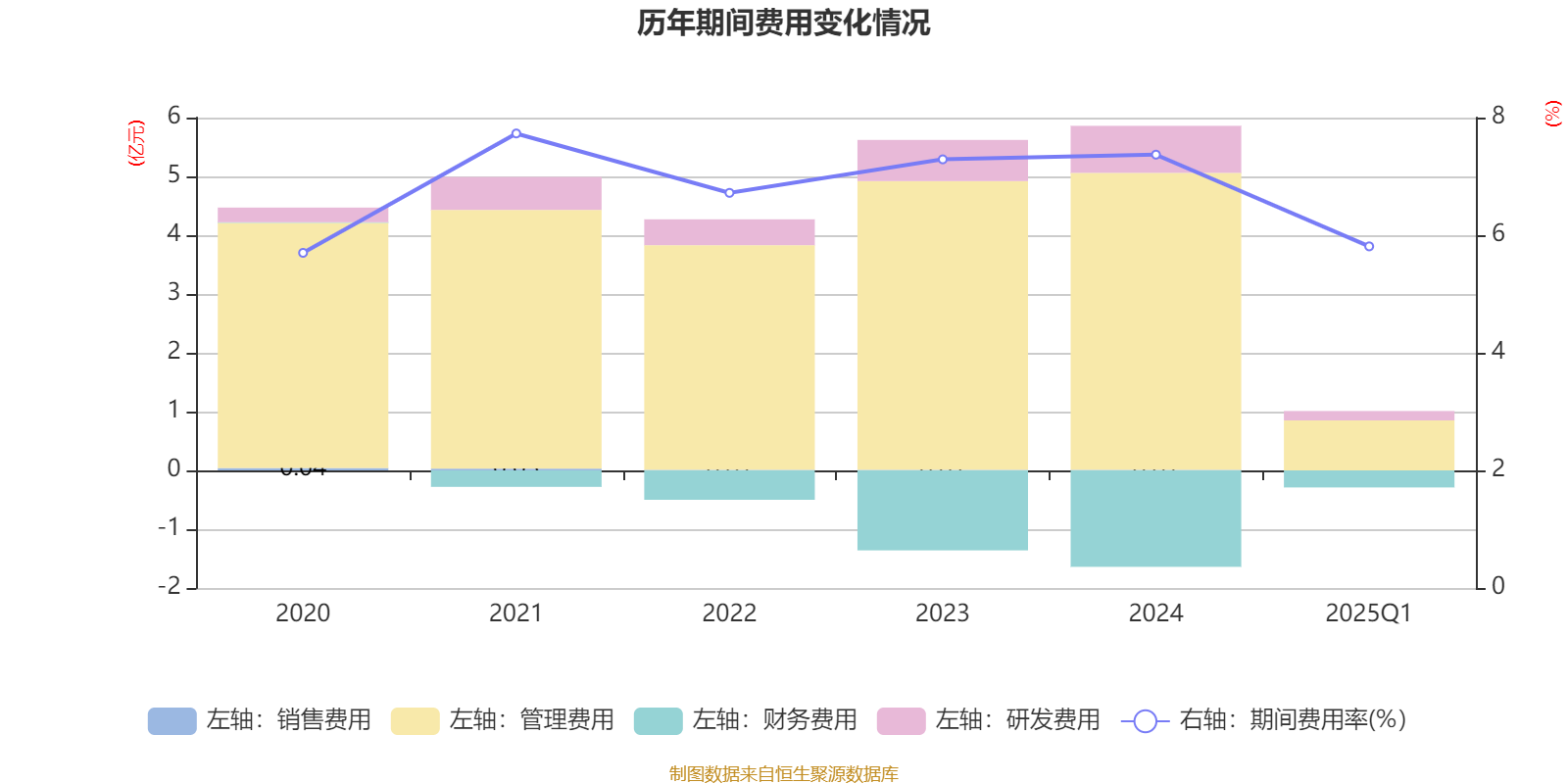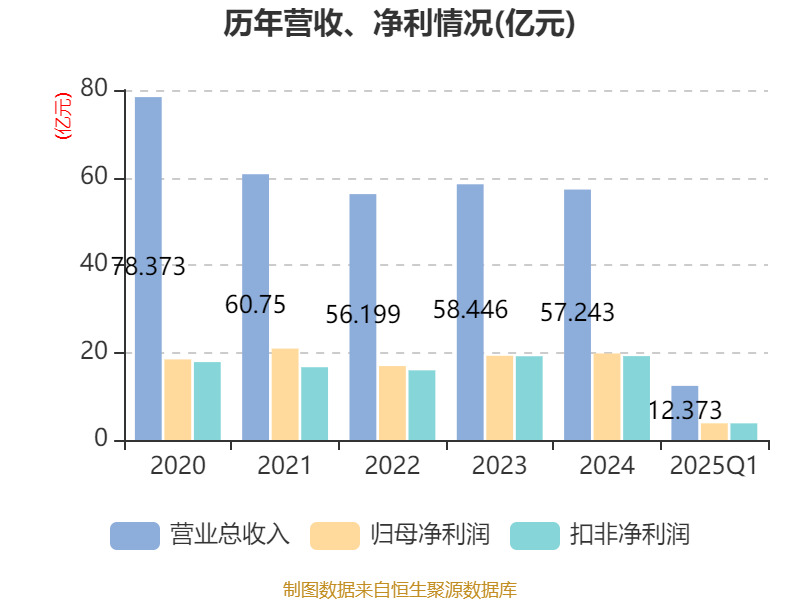 截至2025年一季度末,公司经营活动现金流净额为1.96亿元,同比下降69.99%;筹资活动现金流净额0元,与同期相比基本不变;投资活动现金流净额-4.13亿元,上年同期为-1.96亿元。