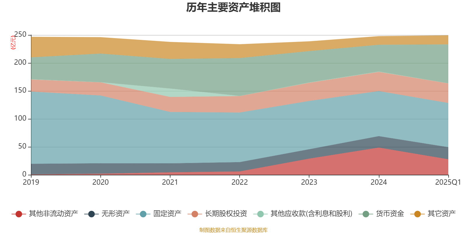 资产重大变化方面,截至2025年一季度末,公司货币资金较上年末增加45.36%,占公司总资产比重上升8.61个百分点;其他非流动资产较上年末减少43.08%,占公司总资产比重下降8.49个百分点;固定资产较上年末减少1.99%,占公司总资产比重下降0.82个百分点;无形资产较上年末增加5.79%,占公司总资产比重上升0.43个百分点。