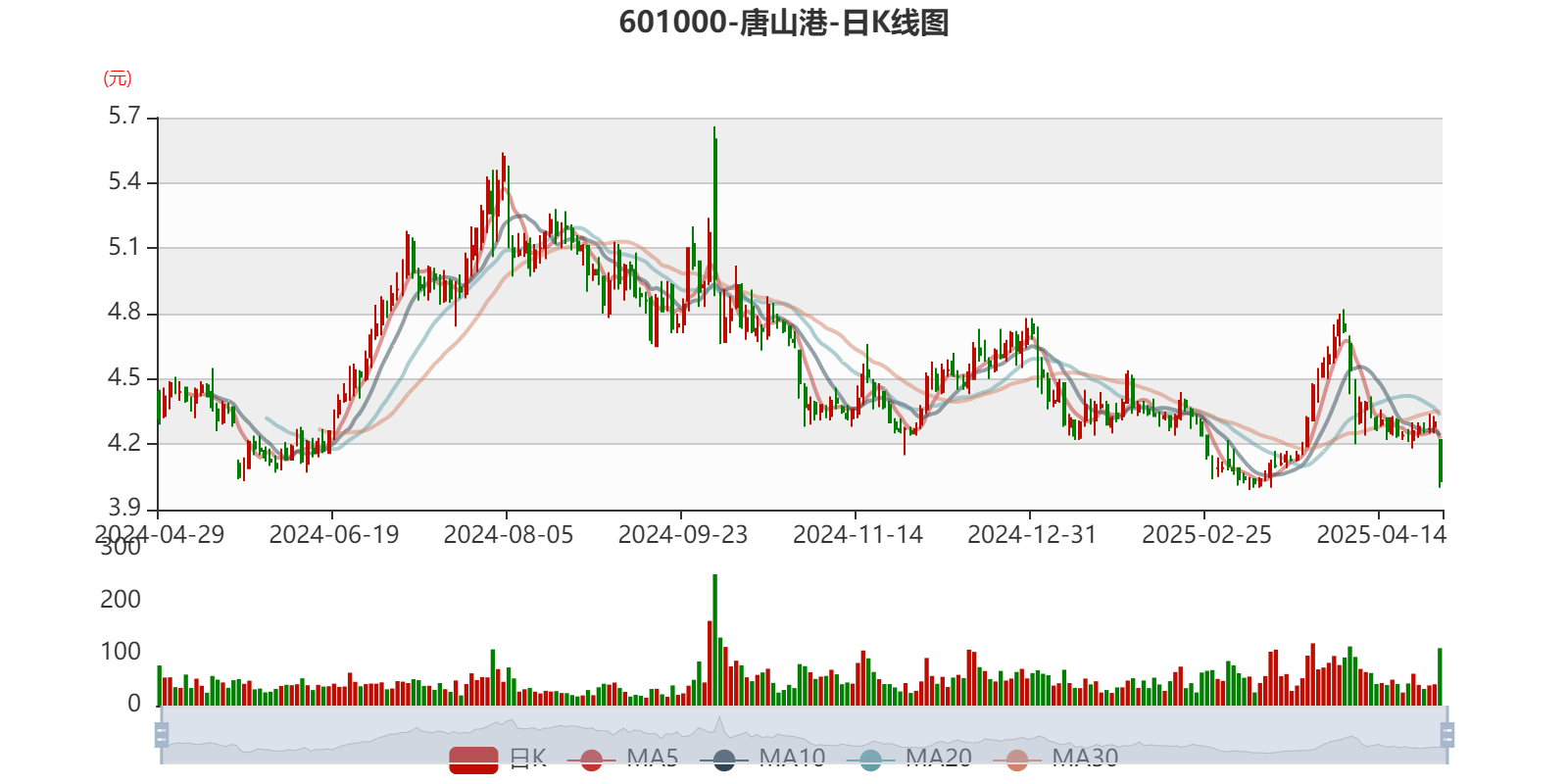 以4月28日收盘价计算,唐山港目前市盈率(TTM)约为14.01倍,市净率(LF)约1.2倍,市销率(TTM)约4.65倍。