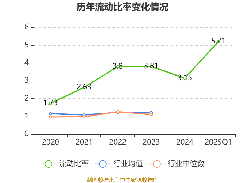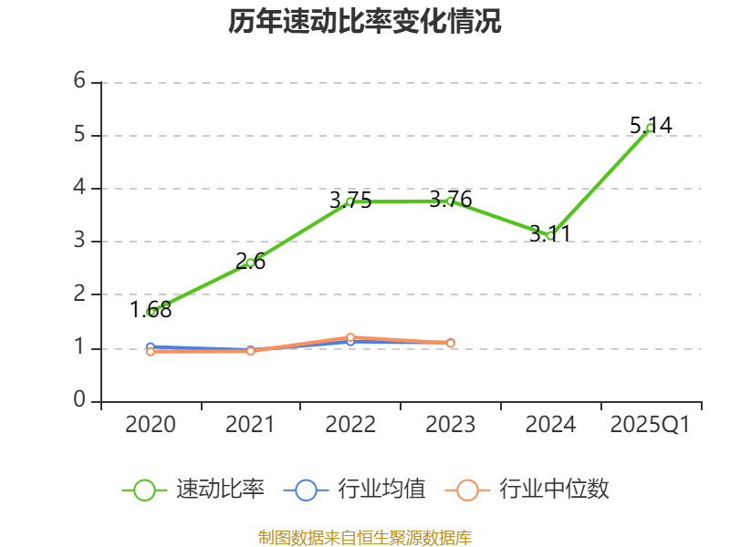 2025年第一季度,公司流动比率为5.21,速动比率为5.14。