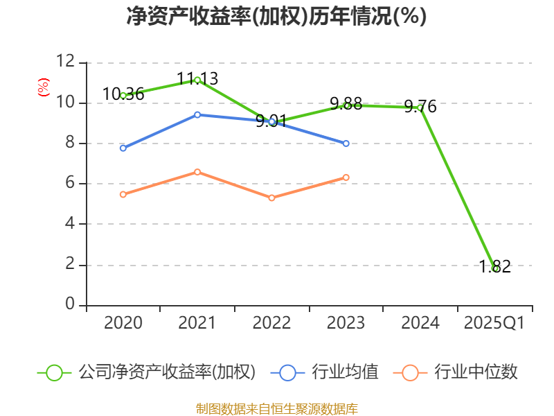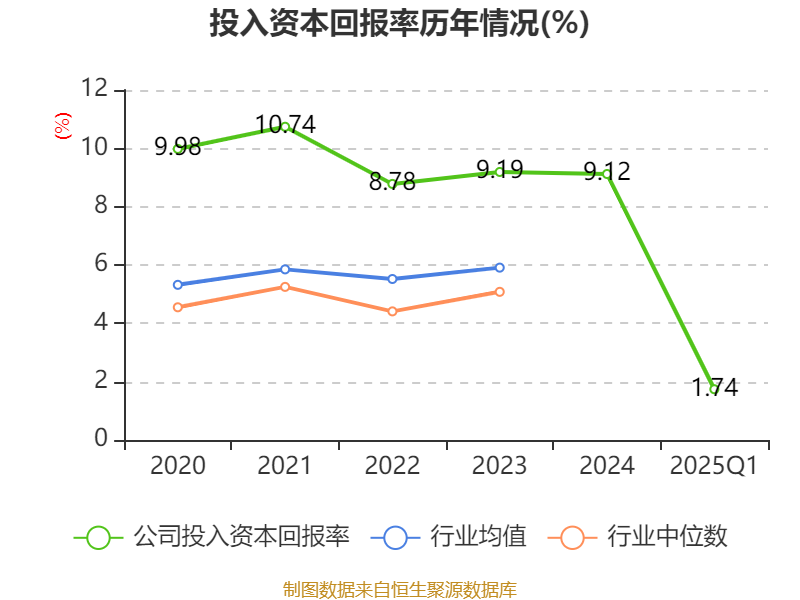 盈利能力方面, 2025年一季度公司加权平均净资产收益率为1.82%,同比下降0.85个百分点。公司2025年第一季度投入资本回报率为1.74%,较上年同期下降0.83个百分点。