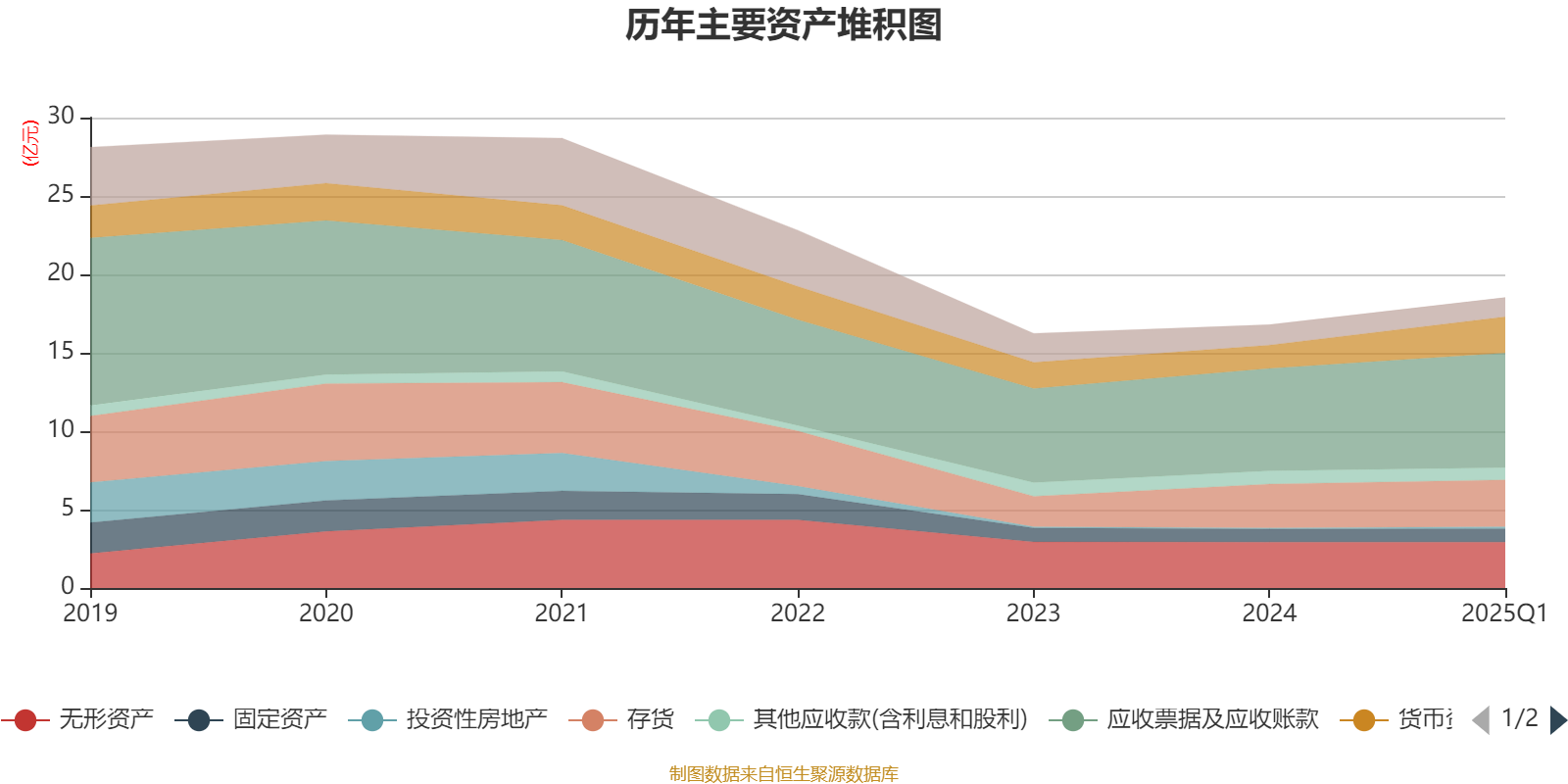 资产重大变化方面,截至2025年一季度末,公司货币资金较上年末增加55.52%,占公司总资产比重上升3.62个百分点;无形资产较上年末减少0.05%,占公司总资产比重下降1.64个百分点;其他应收款(含利息和股利)较上年末减少7.11%,占公司总资产比重下降0.78个百分点;应收票据及应收账款较上年末增加11.97%,占公司总资产比重上升0.58个百分点。