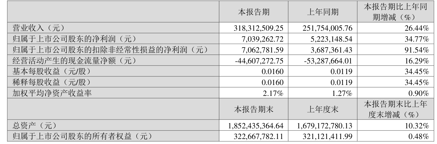 中证智能财讯依米康(300249)4月29日披露2025年第一季度报告。公司实现营业总收入3.18亿元,同比增长26.44%;归母净利润703.93万元,同比增长34.77%;扣非净利润706.28万元,同比增长91.54%;经营活动产生的现金流量净额为-4460.73万元,上年同期为-5328.77万元;报告期内,依米康基本每股收益为0.016元,加权平均净资产收益率为2.17%。