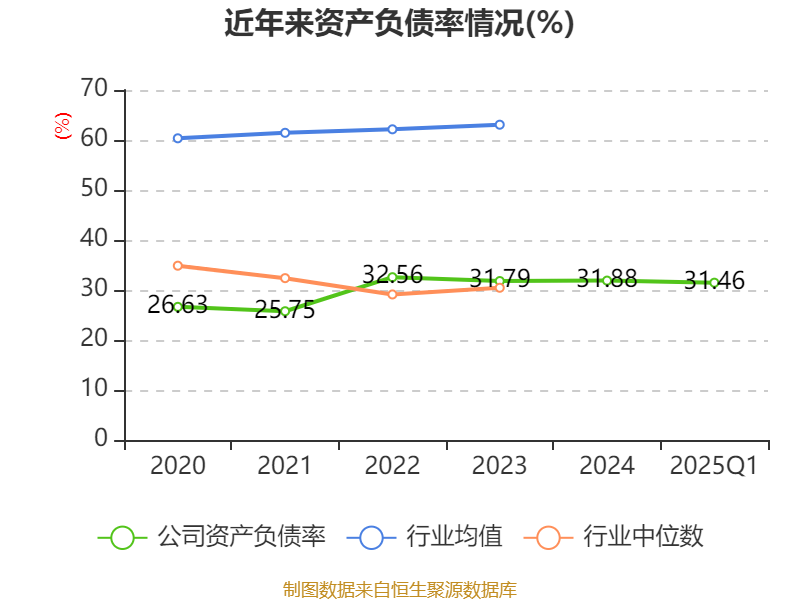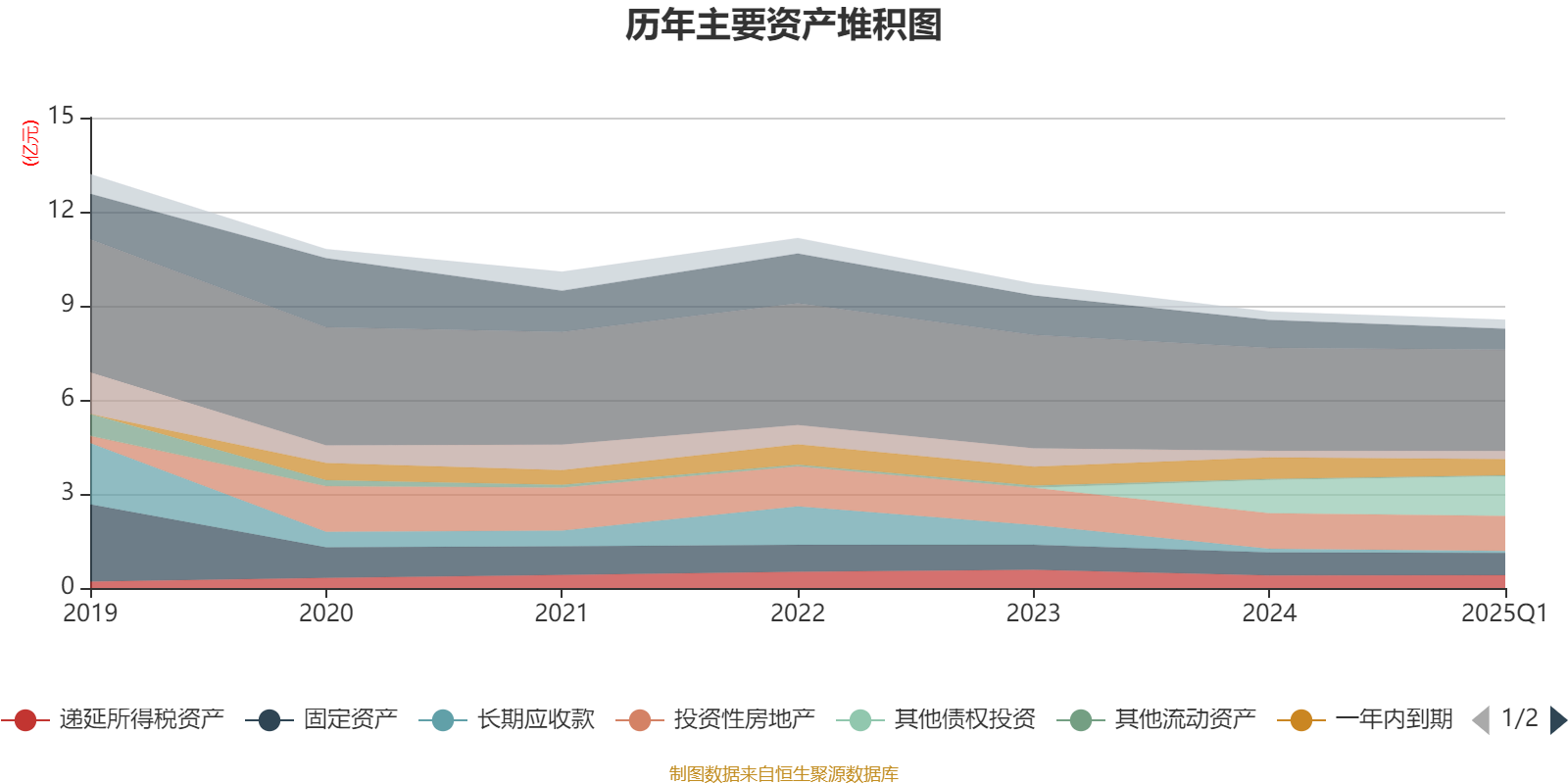 资产重大变化方面,截至2025年一季度末,公司其他债权投资较上年末增加19.06%,占公司总资产比重上升2.75个百分点;货币资金较上年末减少24.91%,占公司总资产比重下降2.28个百分点;一年内到期的非流动资产较上年末减少25.09%,占公司总资产比重下降1.77个百分点;存货较上年末增加25.27%,占公司总资产比重上升0.7个百分点。