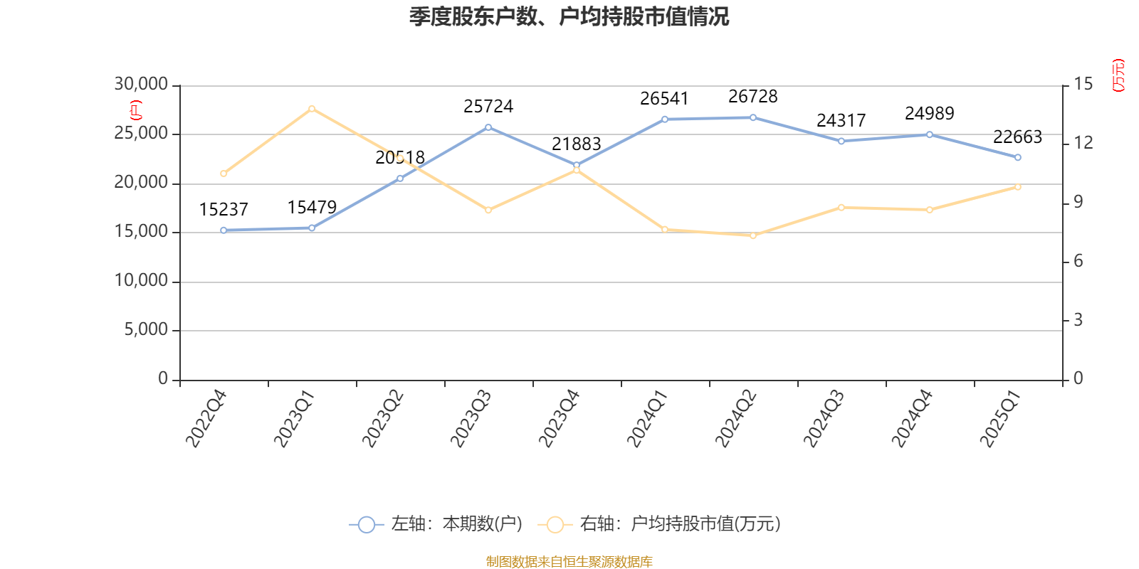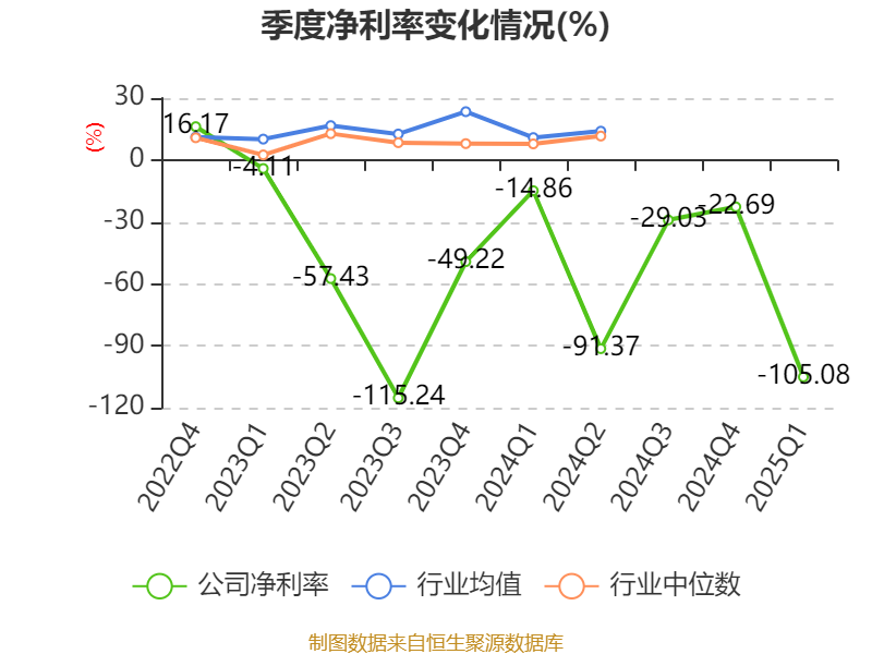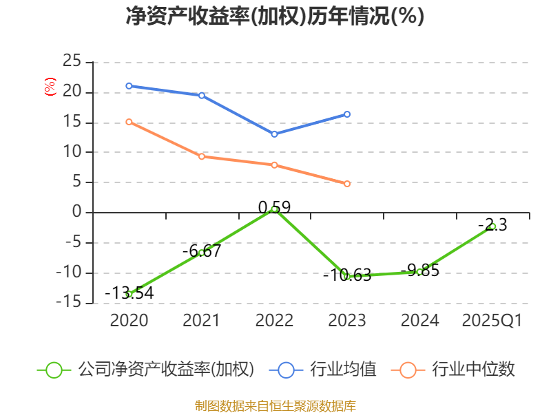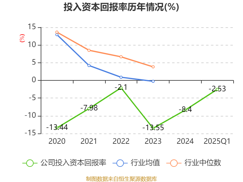 盈利能力方面, 2025年一季度公司加权平均净资产收益率为-2.3%,同比下降1.87个百分点。公司2025年第一季度投入资本回报率为-2.53%,较上年同期下降1.92个百分点。